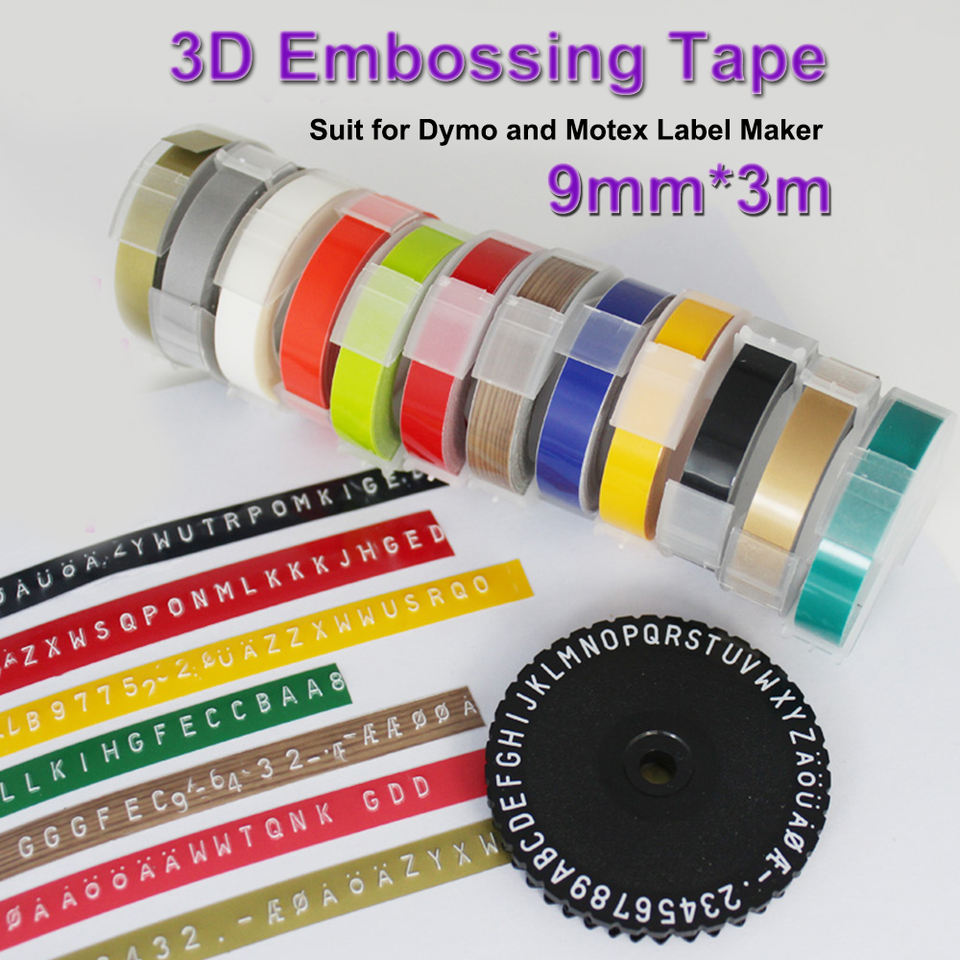 Cinta de 9mm compatible con DYMO Impresora 3D cinta de grabado Manual etiquetas estéreo para Dymo 1610/1540 Motex E101 impresora de etiquetas