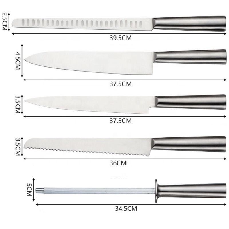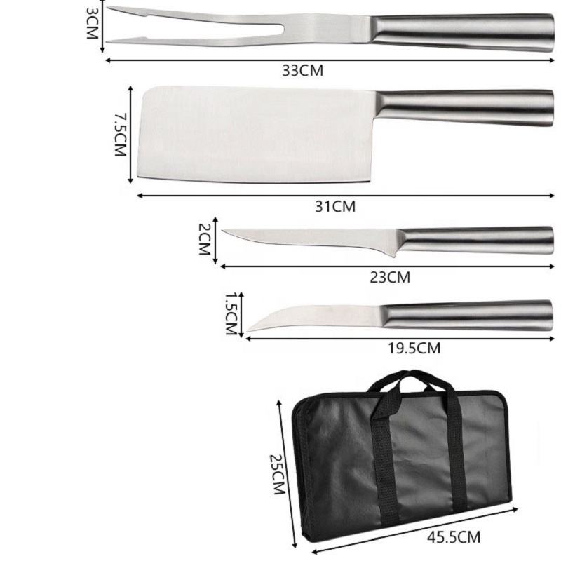 Juego de 9 Cuchillos de Cocina de Acero Inoxidable, Cortador de Jamón, Cuchillo de Chef, Cuchillo para Deshuesar, Tenedor para Carne, Bolsa de Nailon Enrollable, Juego de Cuchillos para Camping