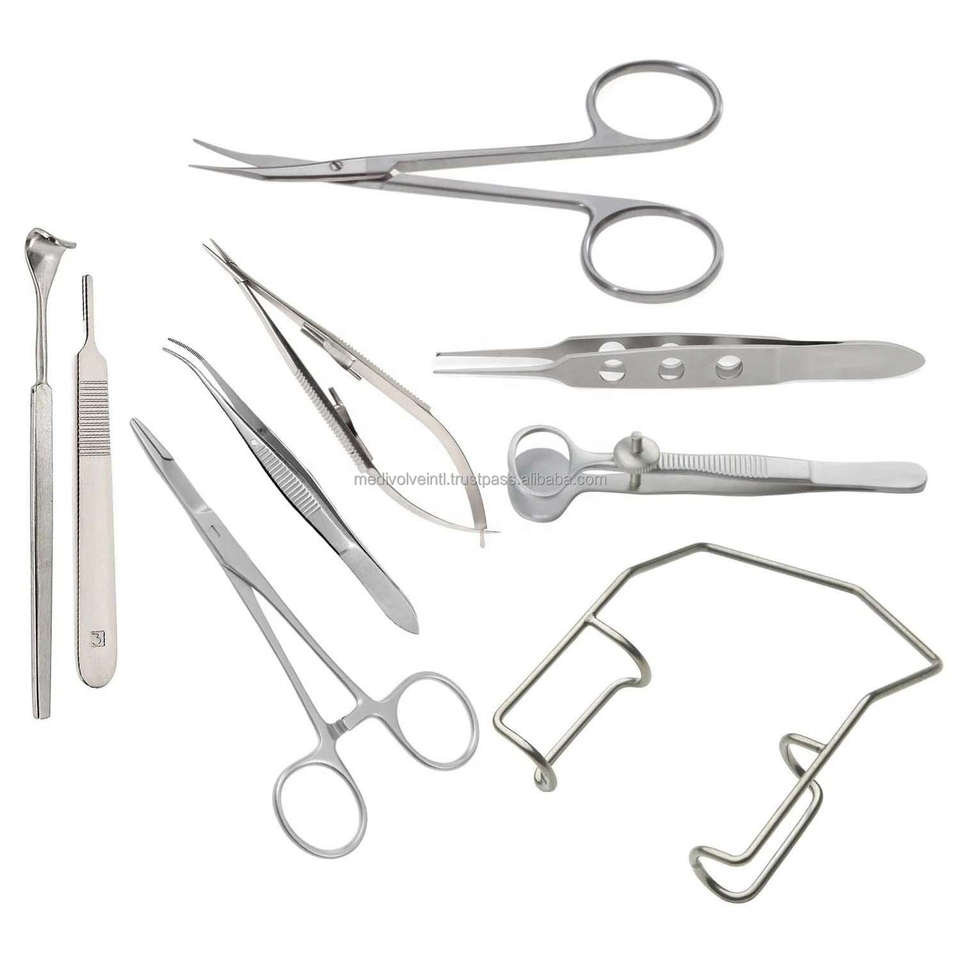 Kit de 9 Piezas de Instrumentos Quirúrgicos Oftálmicos Manuales para Cirugía Ocular Veterinaria, Herramientas Quirúrgicas Oftálmicas de Acero Inoxidable Alemán