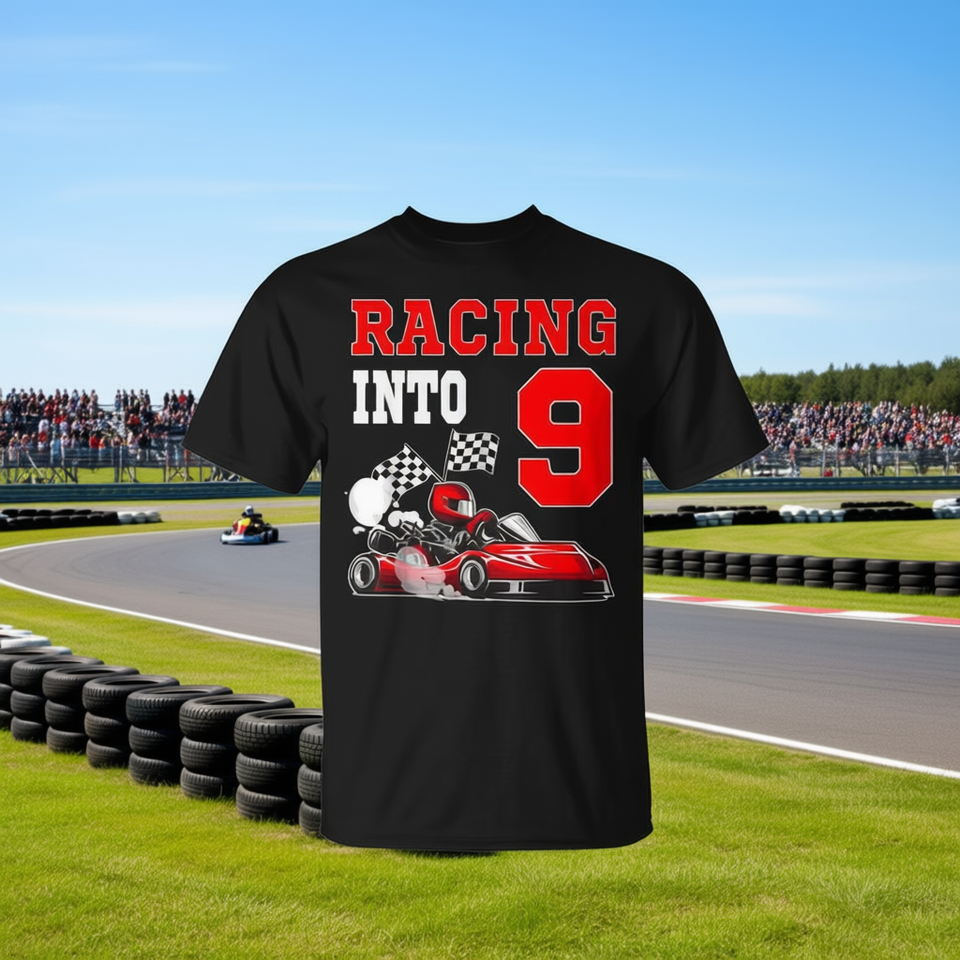 Camiseta con Temática de Carreras de Karts para Cumpleaños Número 9, Idea de Regalo Promocional para Niños de 9 Años