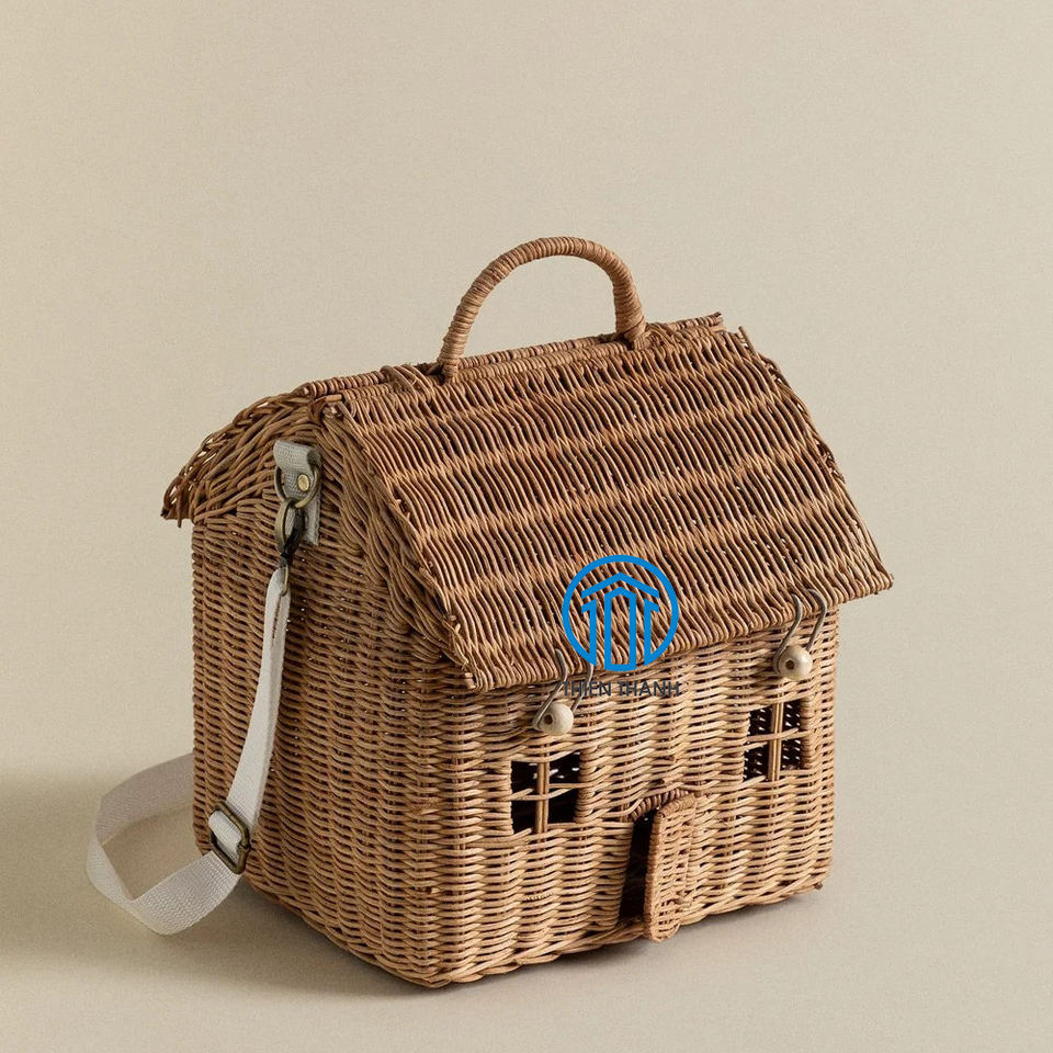Hecho a mano de fibra natural ratán casa en forma de picnic