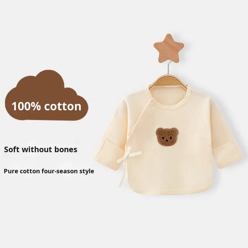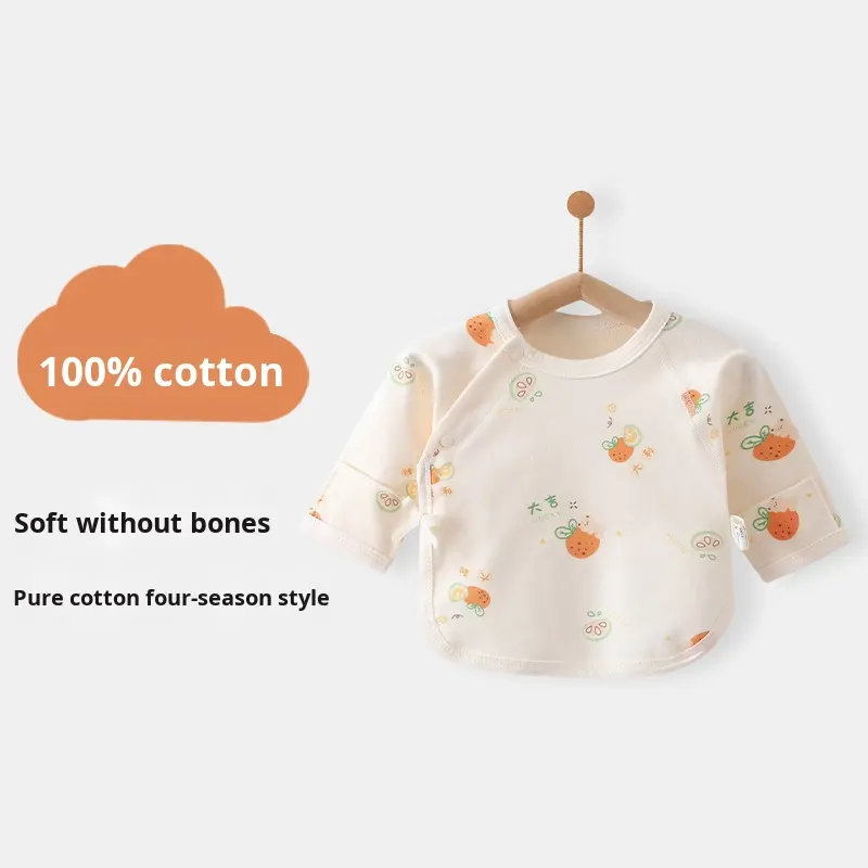 Camisa de media espalda de algodón infantil de clase A, diseño sin costuras para primavera otoño cuatro estaciones 100%, Material de algodón, ropa de monjes recién nacidos