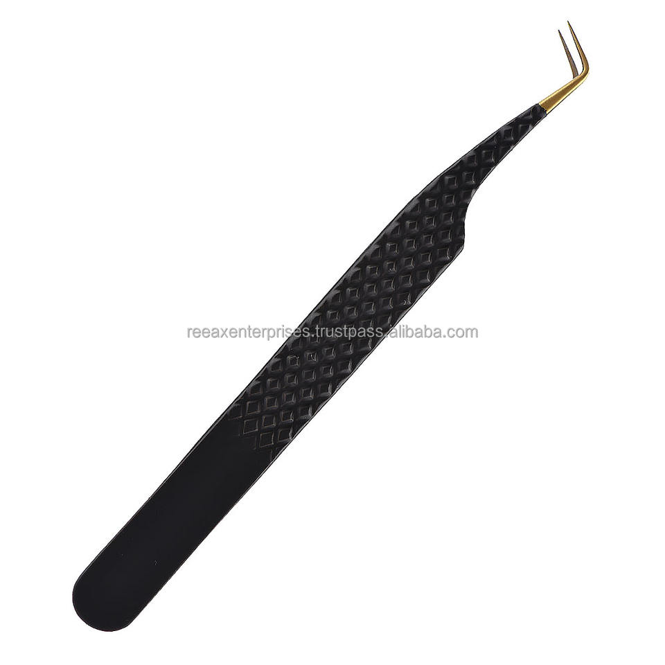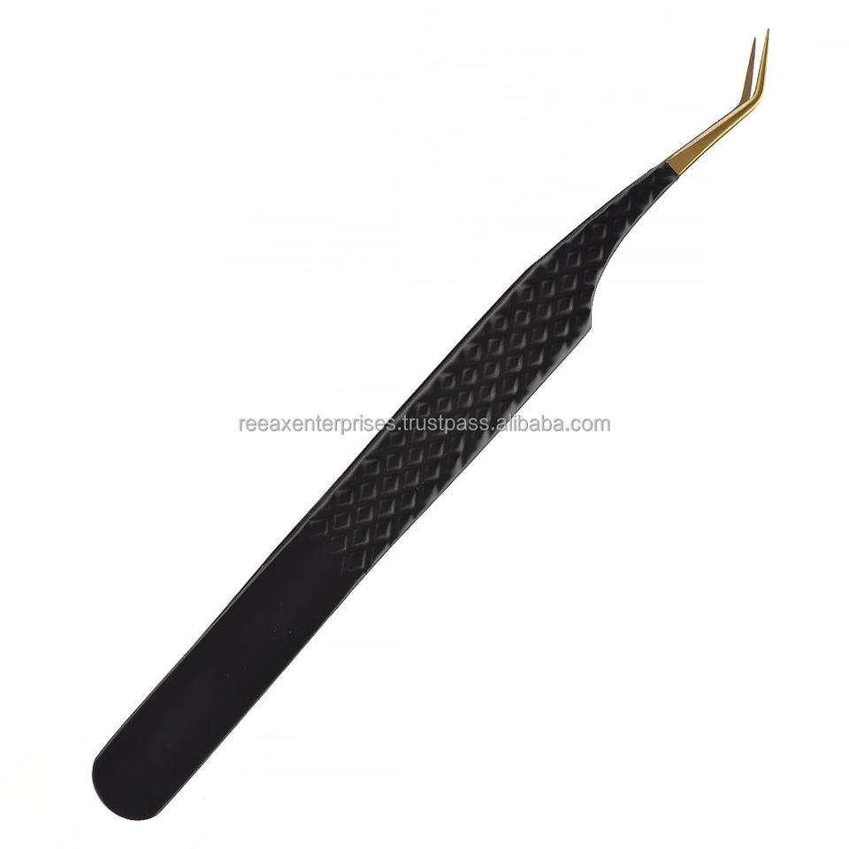 Pinzas para Pestañas de Acero Inoxidable de Grado A+ con Punta Inclinada para Extensión de Cejas de Reeax Enterprises