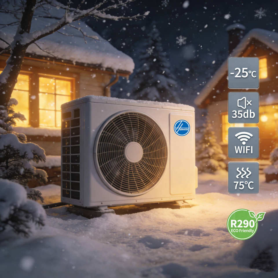 Bomba de Calor de Fuente de Aire A+++ R290 de Bajo Ruido (35dB) con Inversor DC, Calentadores de Agua Monobloque para el Hogar en Invierno