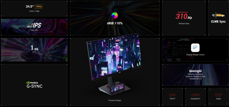Monitor para Juegos ASUS ROG Strix XG259CMS de 24.5 Pulgadas FHD 310Hz Fast IPS 1ms GTG Compatible con NVIDIA G-SYNC HDR10 Pantalla de Escritorio