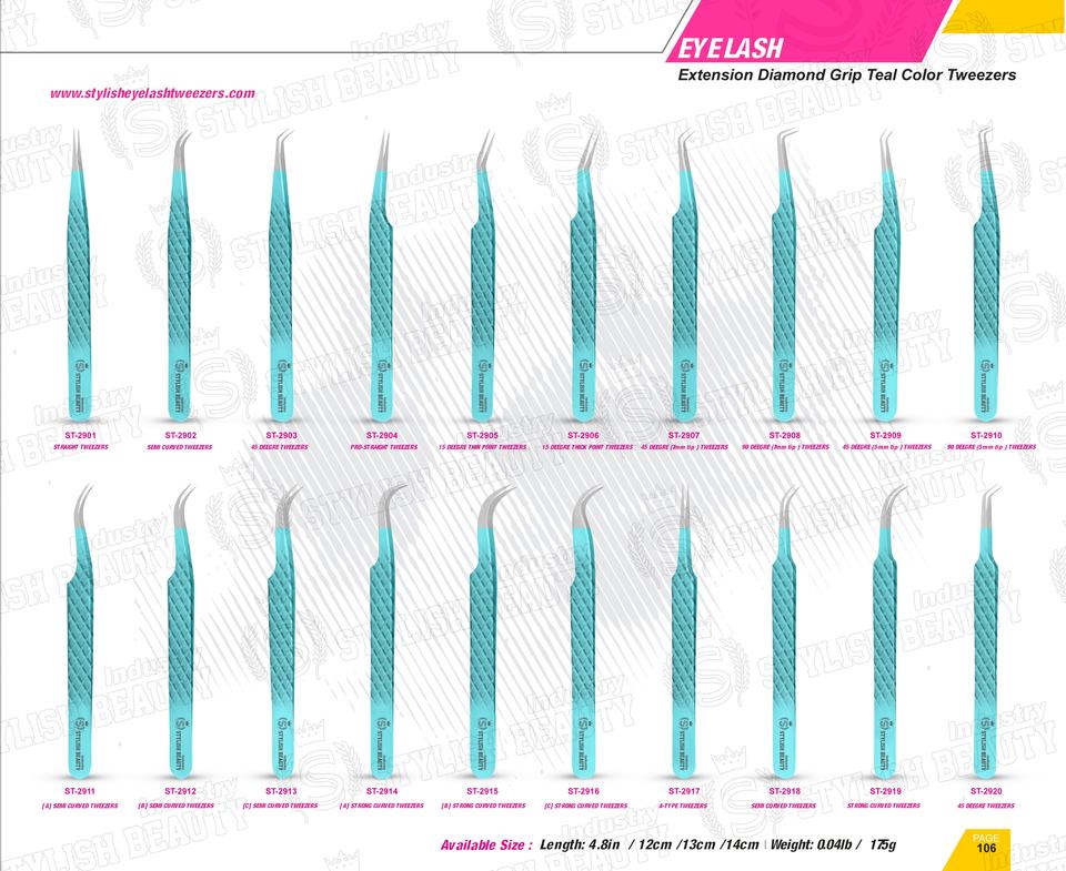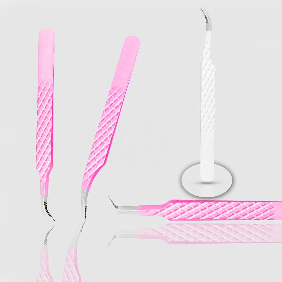 Pinzas para pestañas de acero inoxidable con recubrimiento en polvo tipo A, diseño personalizado para pestañas intrincadas