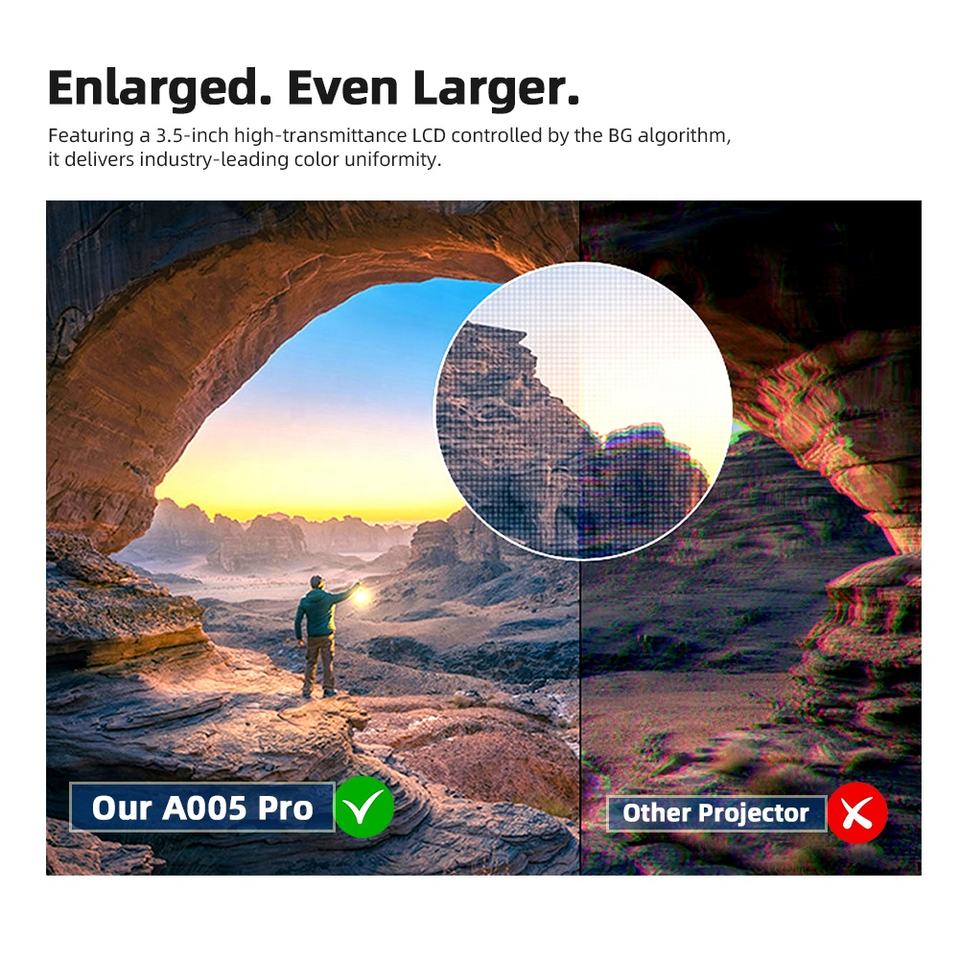 Proyector LED 4K Portátil A005 Pro Android 1080P con Altavoz de 20W, Luz Ambiental, Alto Lumen, Cine, Google Smart TV, Fútbol