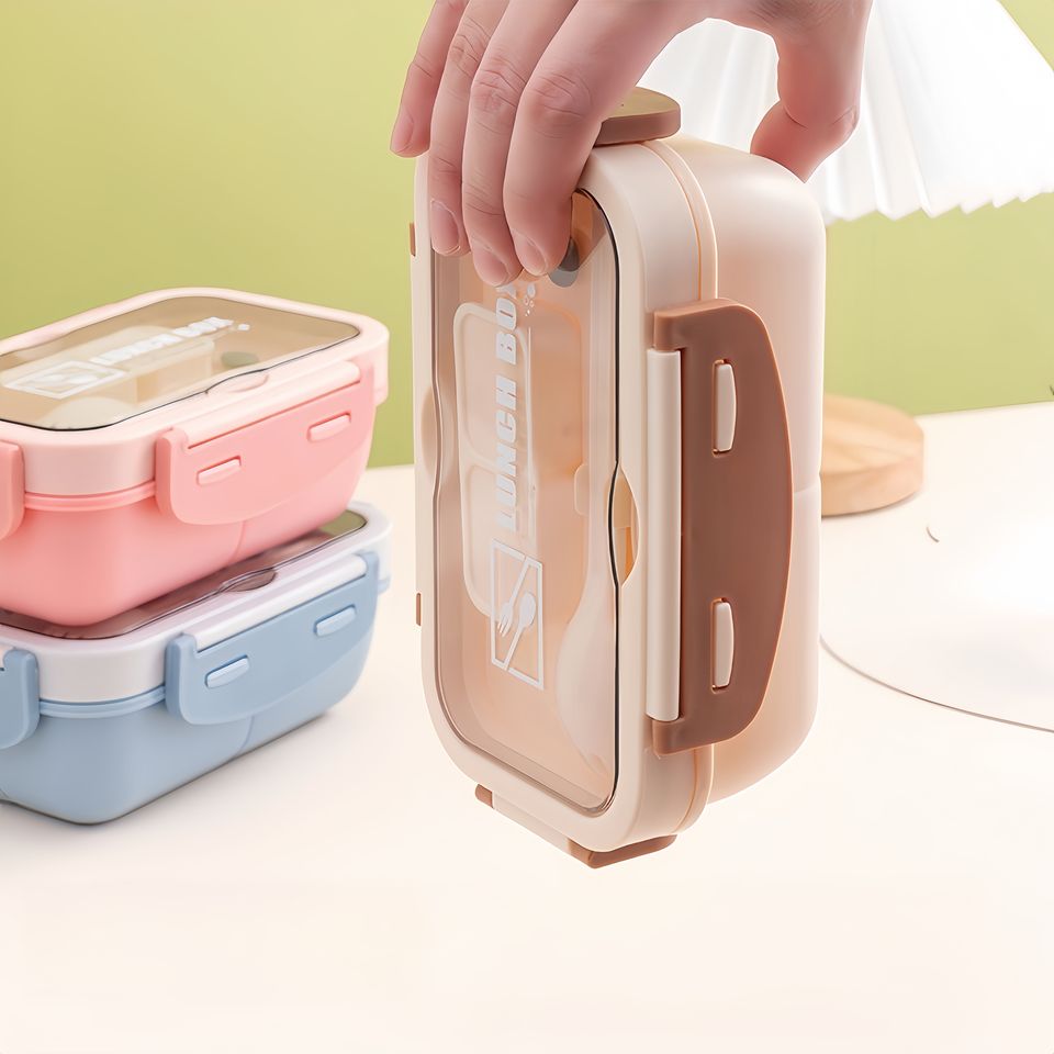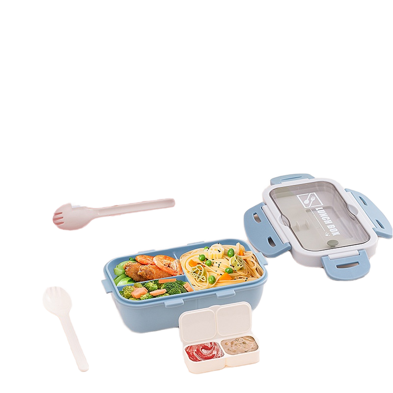 Juego de fiambrera Bento para niños A01 con contenedor de comida de plástico, tenedor, cuchara y diseño bonito para comidas escolares