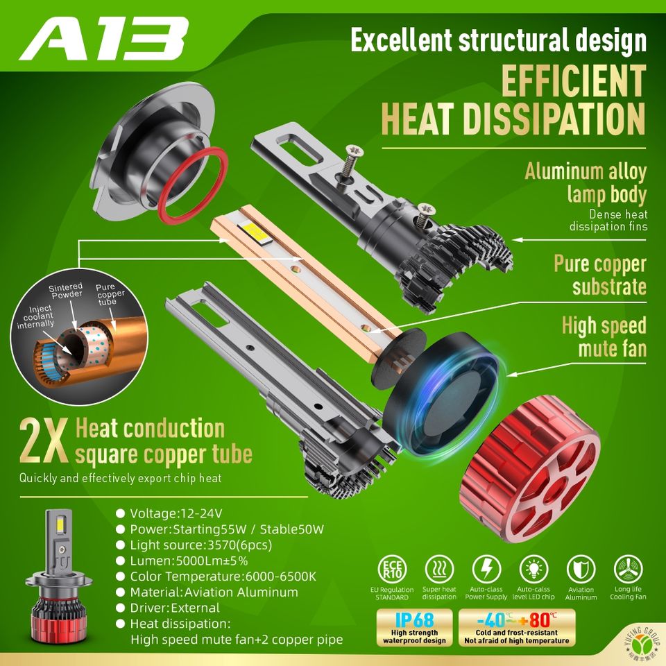 Bombillas LED A13 Mini H4 para Faros Delanteros, 110 W, 11600 LM, 6500 K, Alta Potencia, Canbus, Sin Errores, Plug and Play, Kit de Lámparas para Automóvil