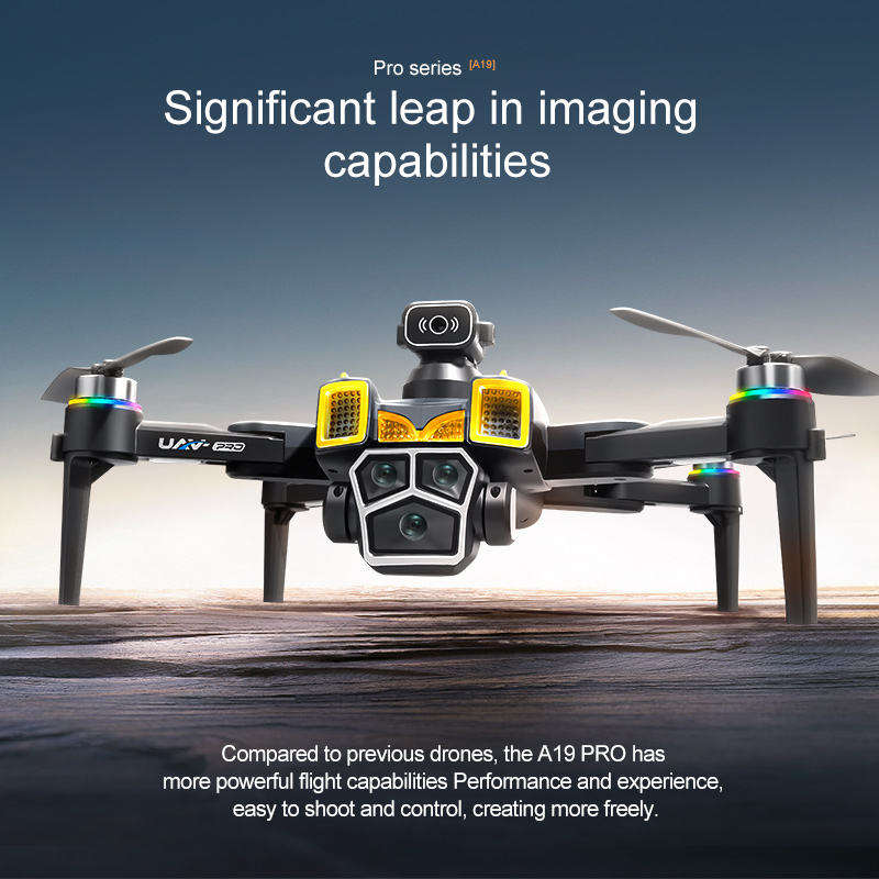 A19 PRO Mini Dron Eléctrico con Pantalla Inteligente HD de 5.6 Pulgadas, Cámara Dual FPV, Sin Escobillas, Evitación de Obstáculos, Diseño Plegable, Alcance de 500m