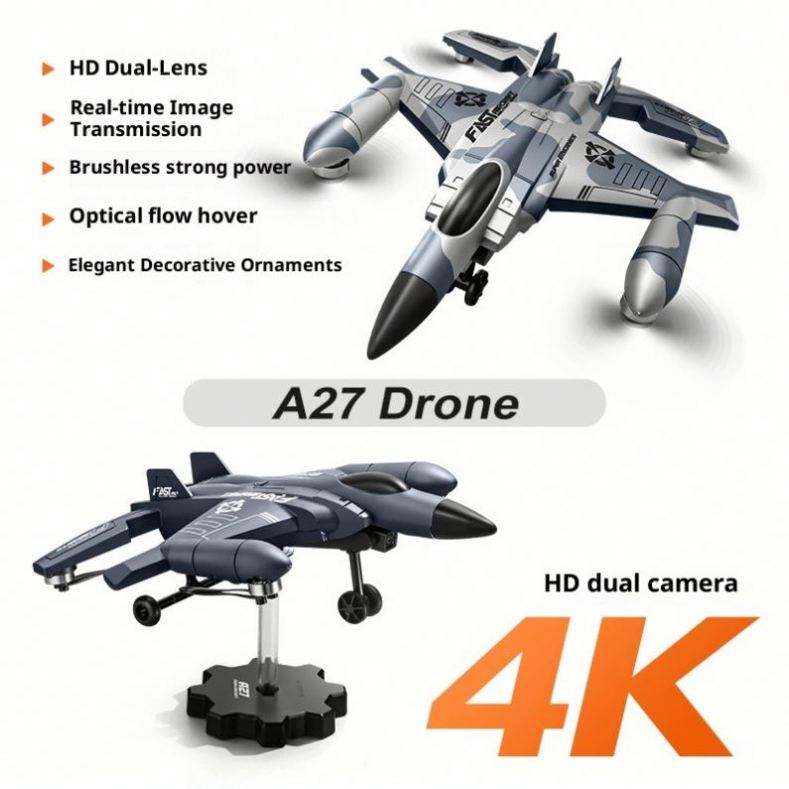 Dron A27 de Gama Alta para Principiantes con Doble Cámara Principal, Cambio Remoto Gratuito, Plástico, Uso en Exteriores, Dron de Combate Aéreo