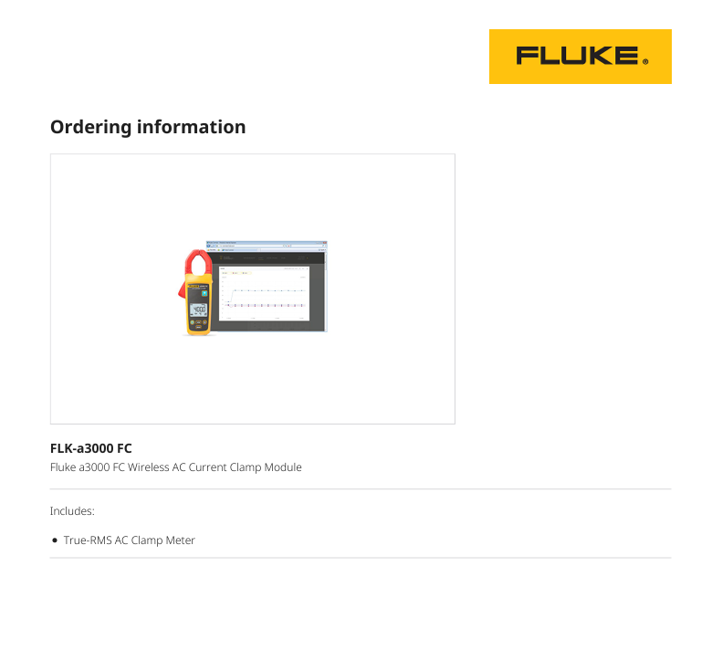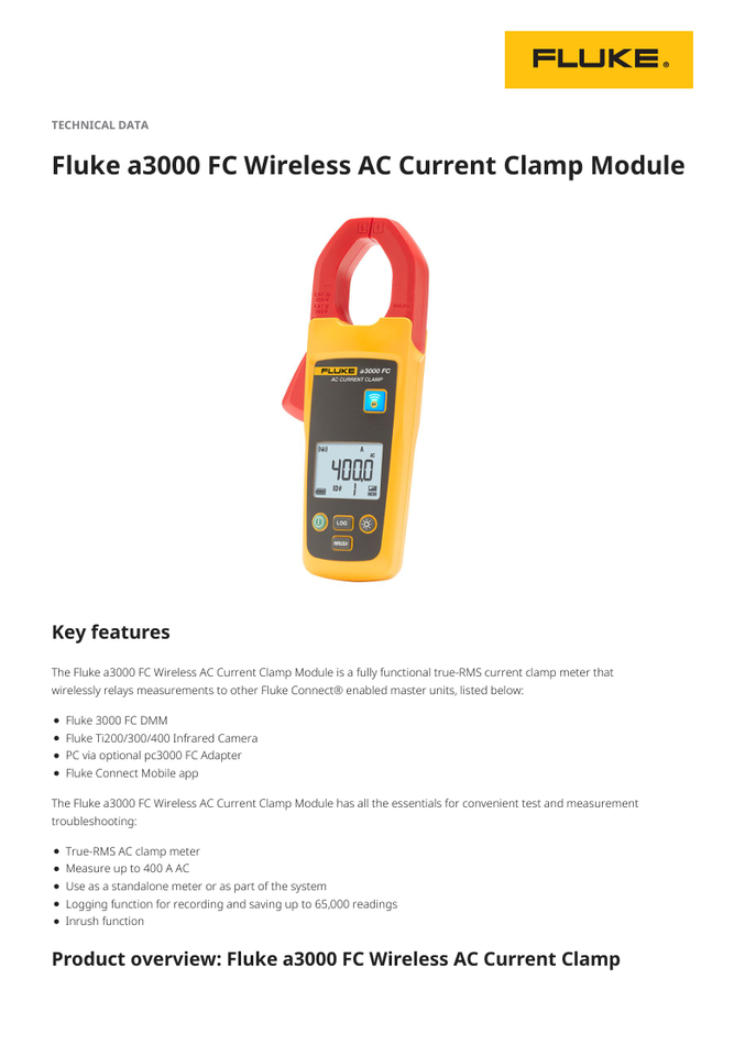 Módulo de Pinza Amperimétrica Inalámbrica A3000 True-RMS para Corriente Alterna con Registro de Datos, Pantalla LCD Retroiluminada, Medición de Corriente de Arranque de 0.5-400 A, 600 V, Alcance de 20 m