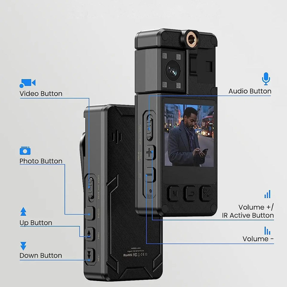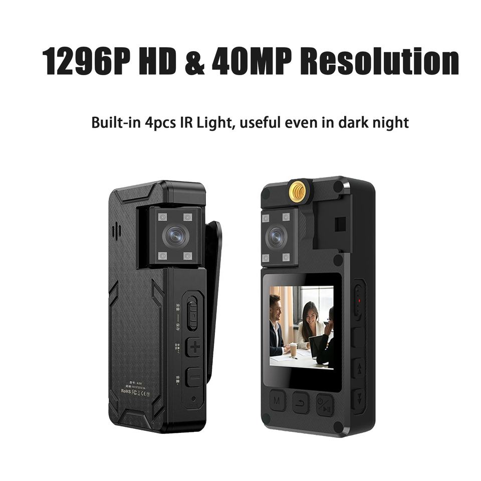 Mini cámaras corporales A38 con visión nocturna infrarroja, lente giratoria de 180 grados, videocámara Real 4K 1080P para reuniones al aire libre