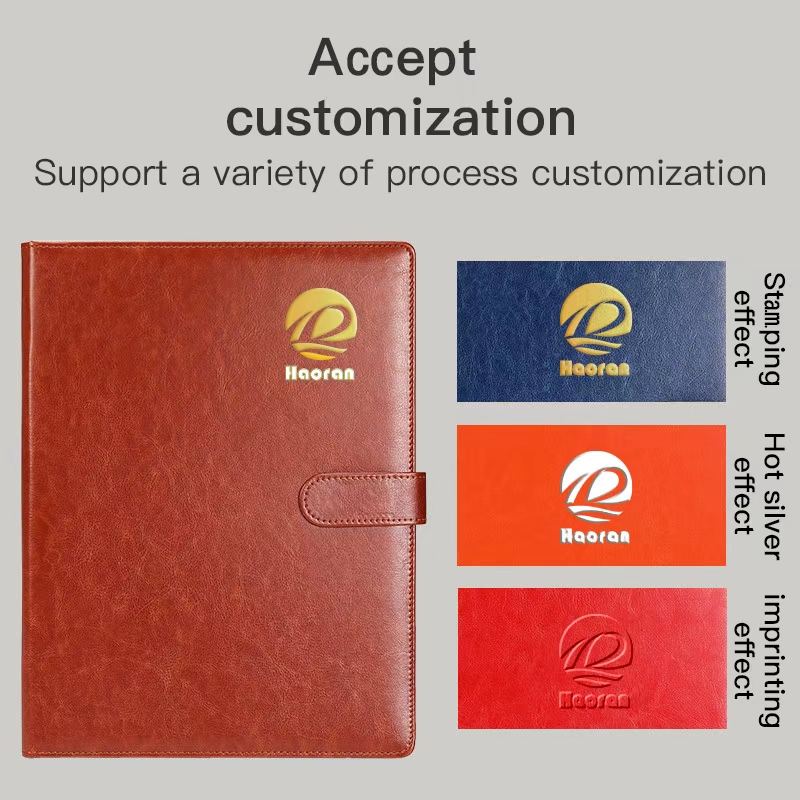 A4 personalizable Business Manager Clip Portafolio Durable PU Funda de cuero Carpeta de documentos con portapapeles y calculadora