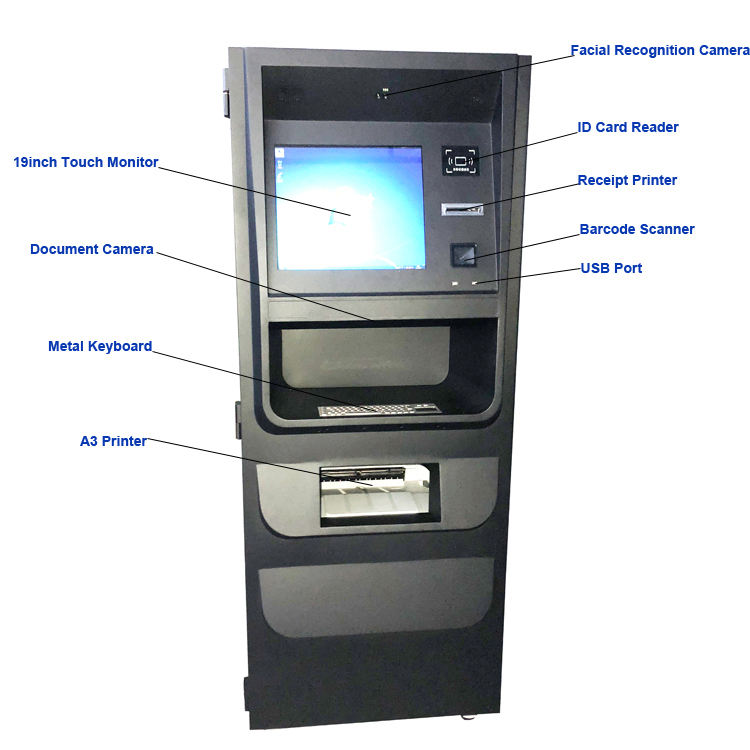 Escáner de documentos A4, quiosco, licencia de documentos, factura, autoservicio, quiosco de impresora A4, certificación universitaria, quiosco de impresión