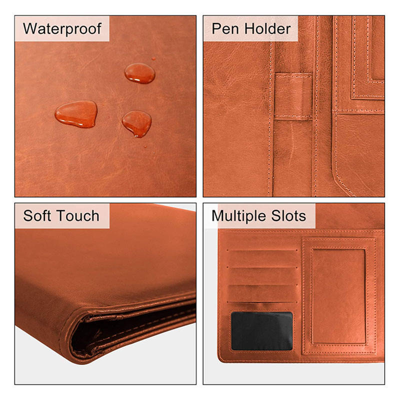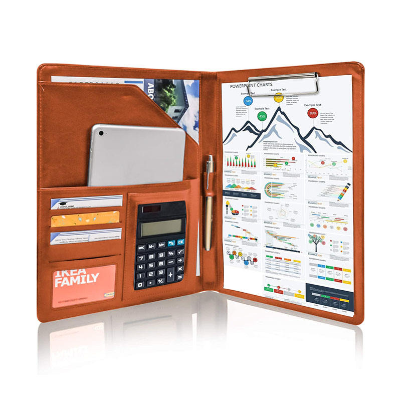 Carpeta de cuero PU A4 para documentos, carpeta de portafolio de cuero PU con calculadora