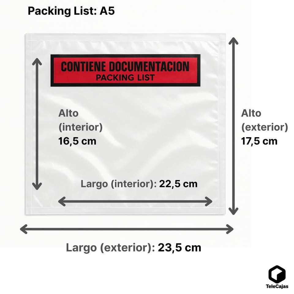 Sobre Adhesivo A5 para Lista de Empaque, 1000 Unidades, 235x175 mm Exterior, 225x165 mm Interior, Escribible para Notas de Entrega y Documentación