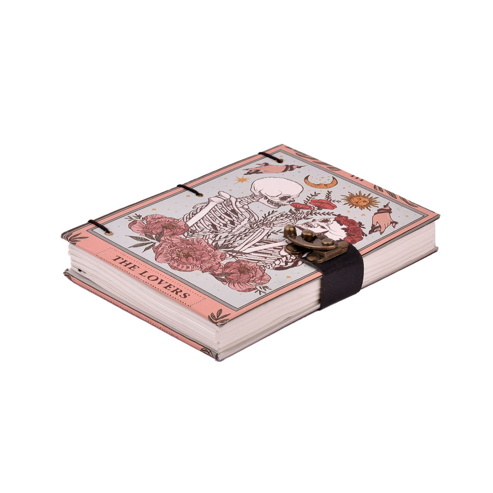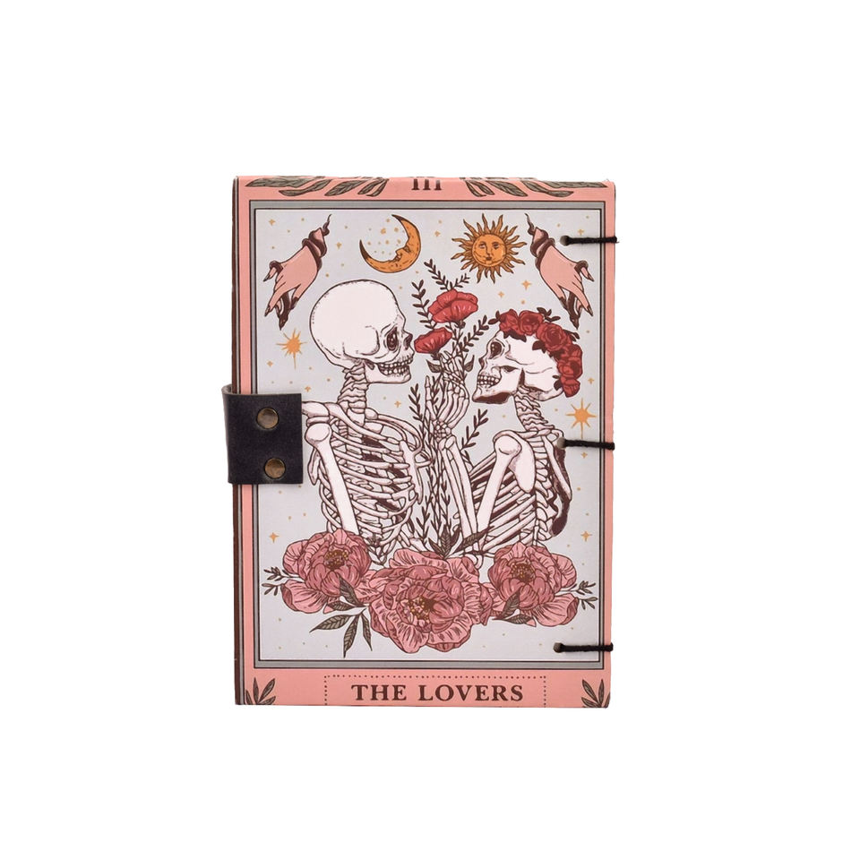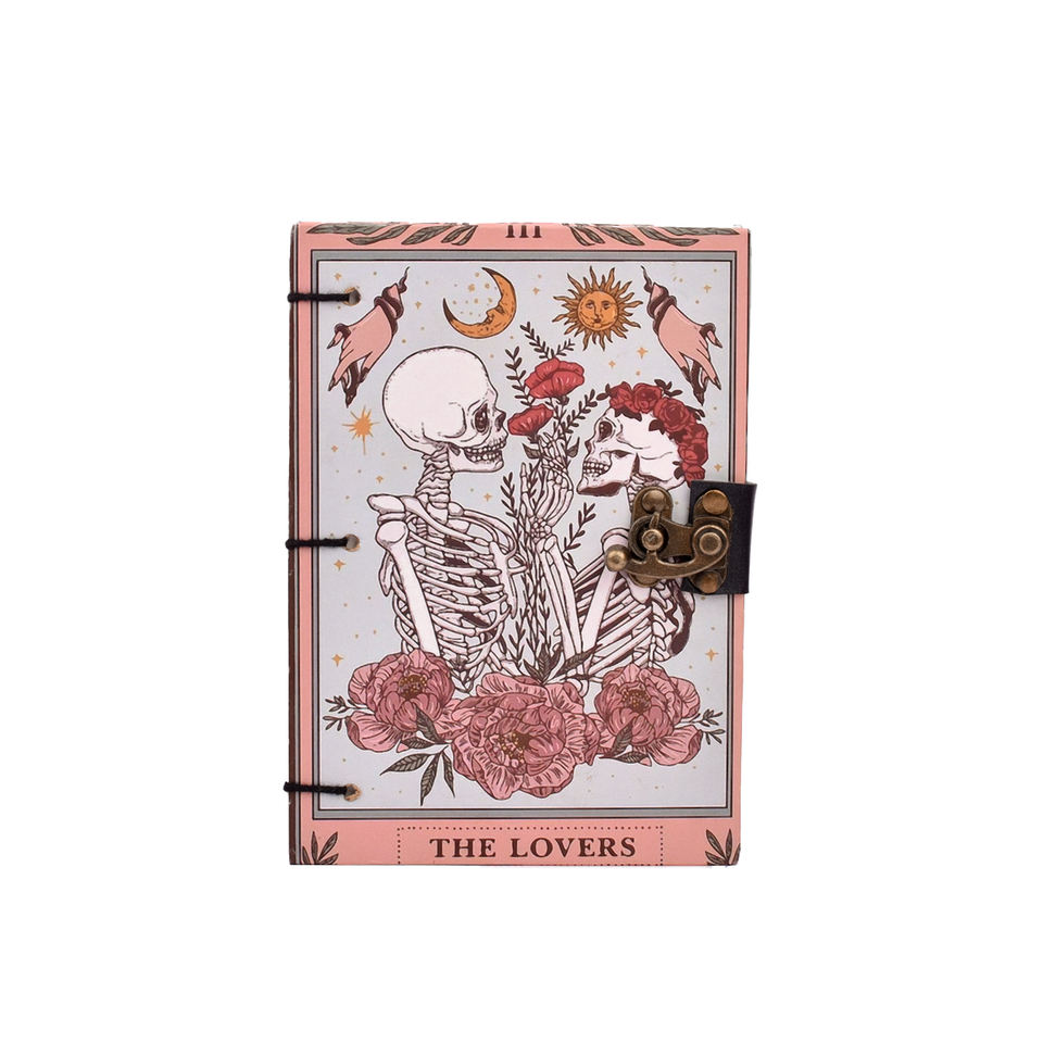 Cuaderno de Papel Hecho a Mano A5, 200 Páginas (Ambos Lados), 100% Papel Hecho a Mano | Diario de diseño vintage con diseño de amantes de los esqueletos, regalo