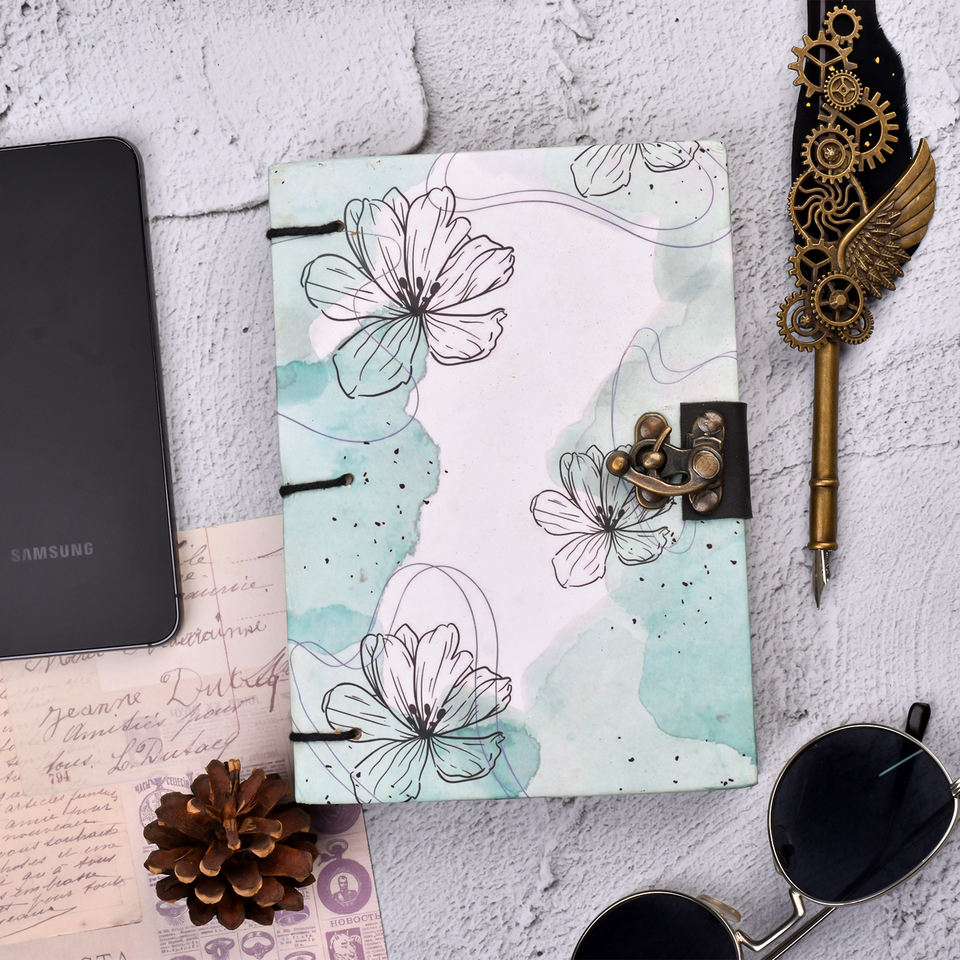 Cuaderno de Papel Hecho a Mano con Diseño Floral Minimalista A5, Diario Ecológico de 100 Páginas con Escritura a Doble Cara y Cierre Metálico, Diseño Elegante