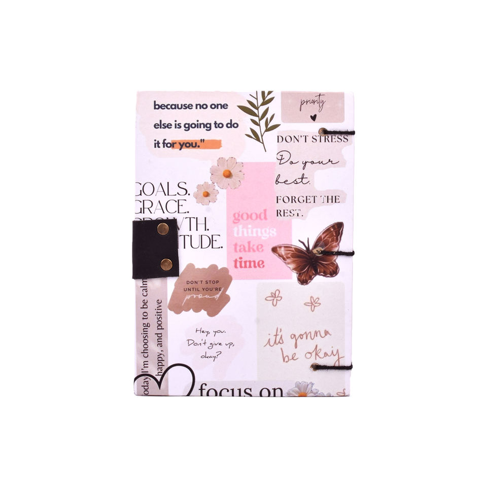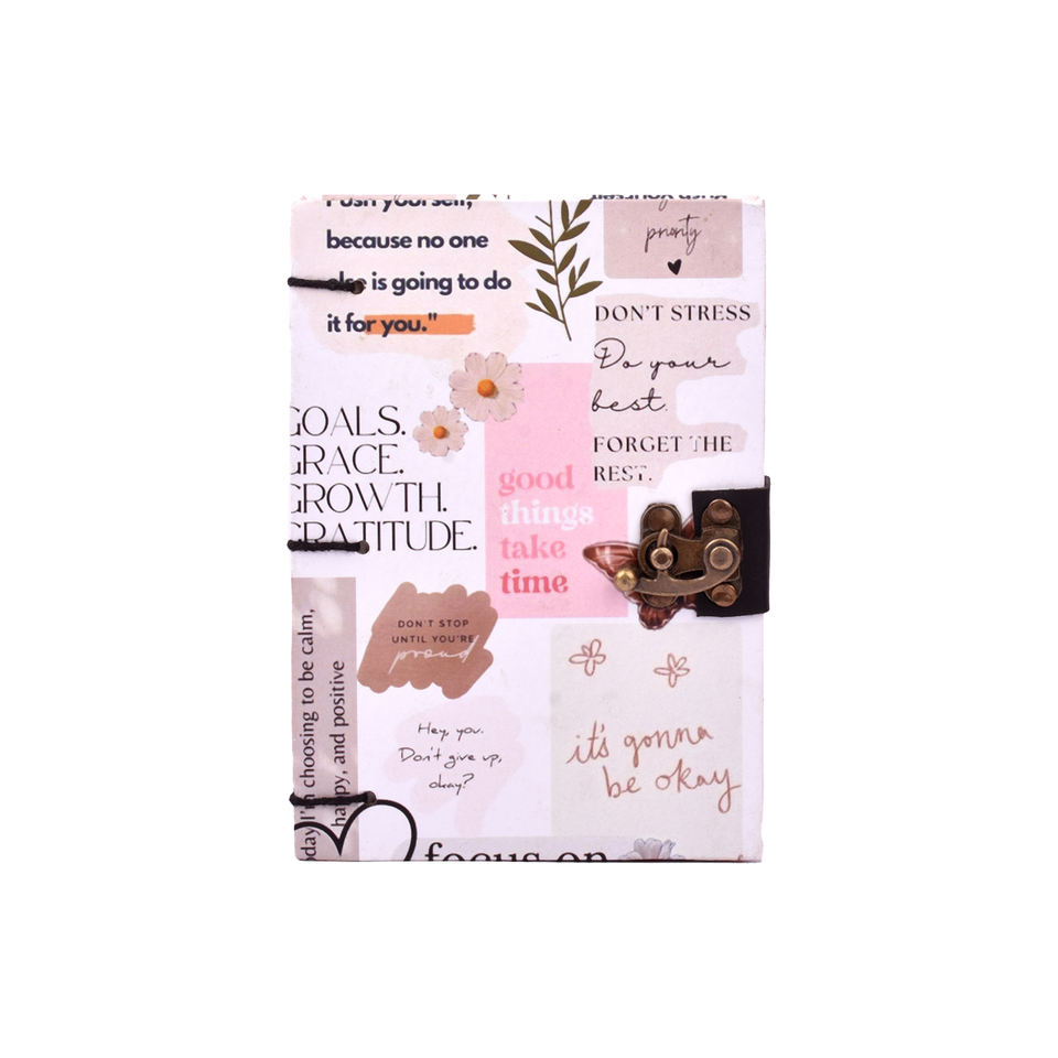 Cuaderno de Papel Hecho a Mano con Diseño de Collage de Frases Motivadoras A5, Diario con Candado, 200 Páginas, Doble Cara, Ecológico, Regalo Premium