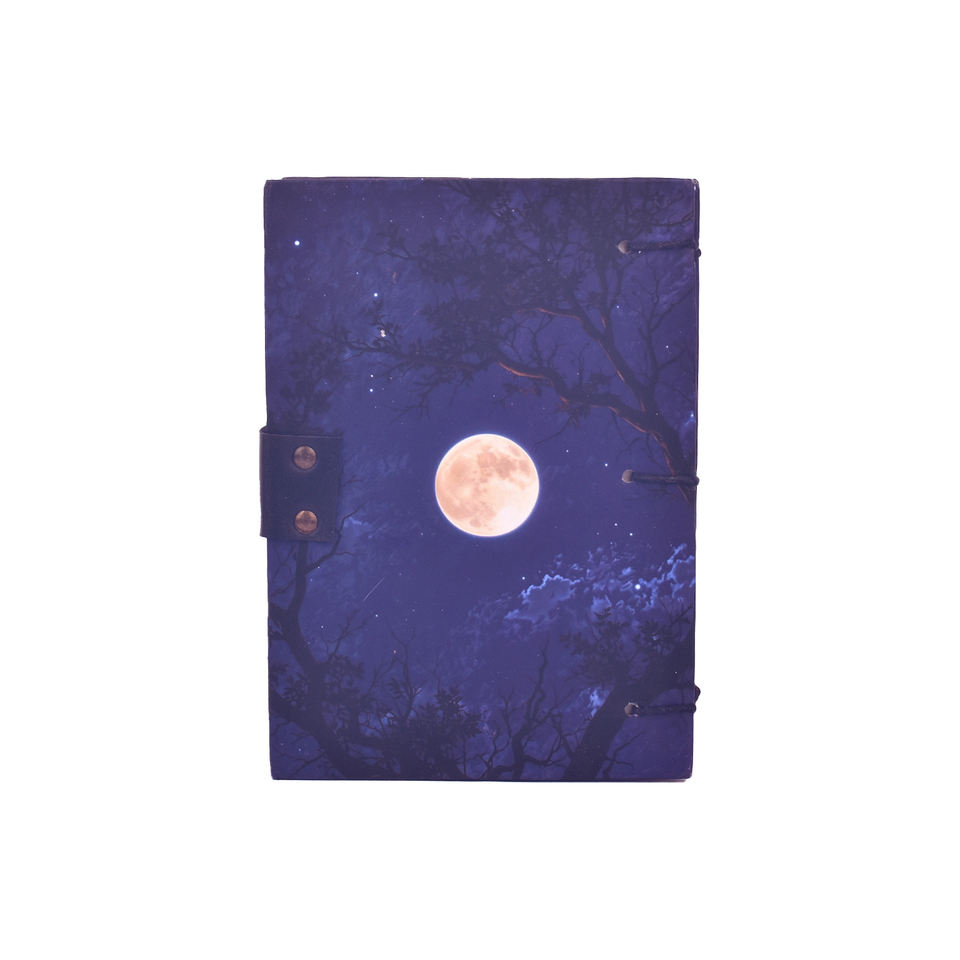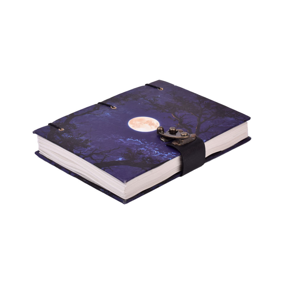 Cuaderno de Papel Hecho a Mano con Diseño de Paisaje Nocturno Lunar A5, Diario con Candado | Diario Ecológico Premium de 100 Páginas para Escribir por Ambos Lados