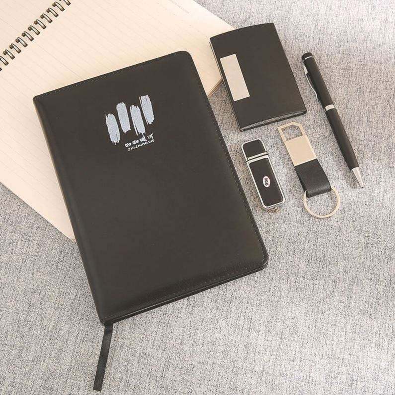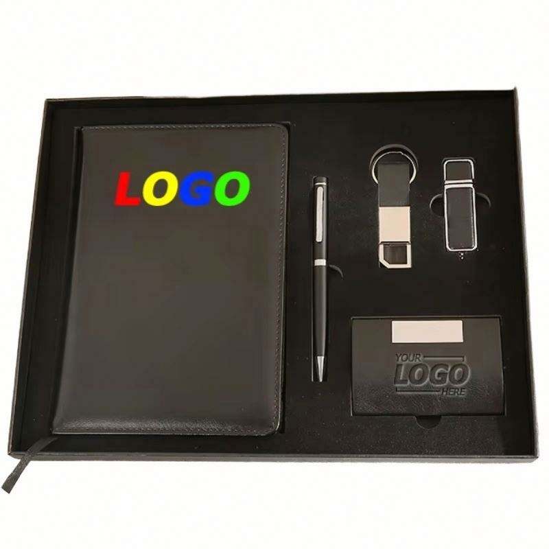 Set de Regalo de Cuaderno A5 de Cuero PU, Libreta de Negocios Personalizada con Memoria USB y Llavero - Regalos Corporativos Premium con Impresión Digital