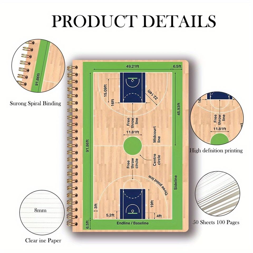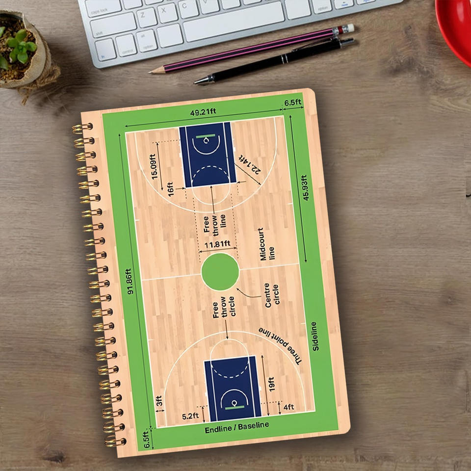 Cuaderno Espiral con Diseño de Cancha de Baloncesto, Papel de Escritura Suave A5, para Diarios