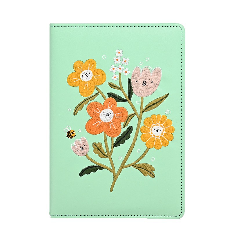 Cuaderno Espiral A5 con Bordado de PU, Diario de Trabajo para Estudiantes, Diseño Floral Simple y Portátil, Regalo