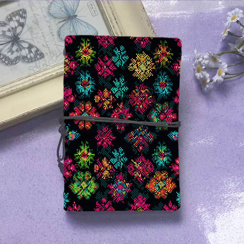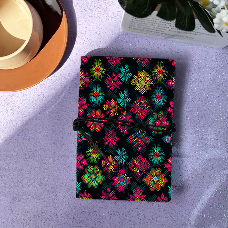 A6 Cuaderno hecho a mano 80 Hojas reemplazables Regalo ideal de regreso a la escuela para estudiantes universitarios con colorido pixel - Art Floral P