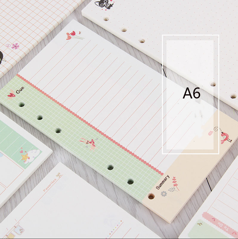 A6 hermoso color, recargable-6 agujeros Ring Binder cuaderno espiral recarga-diario de viaje del planificador de recarga inserto de papel