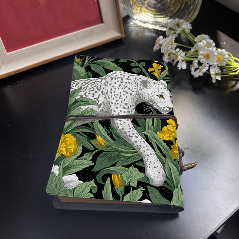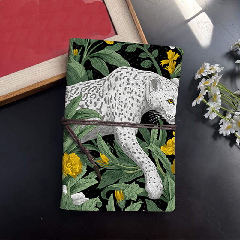 Cuaderno A6, una necesidad para estudiantes de farmacia, dosificación y notas de información de medicamentos de leopardo con flores amarillas, hojas verdes Pri