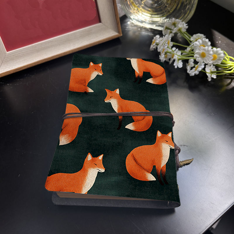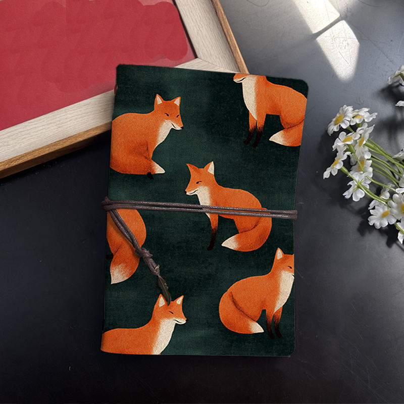 Bloc de notas A6 adecuado para anotaciones de guión de estudiantes de teatro y horarios de ensayo con zorros sobre un fondo oscuro Impresiones O