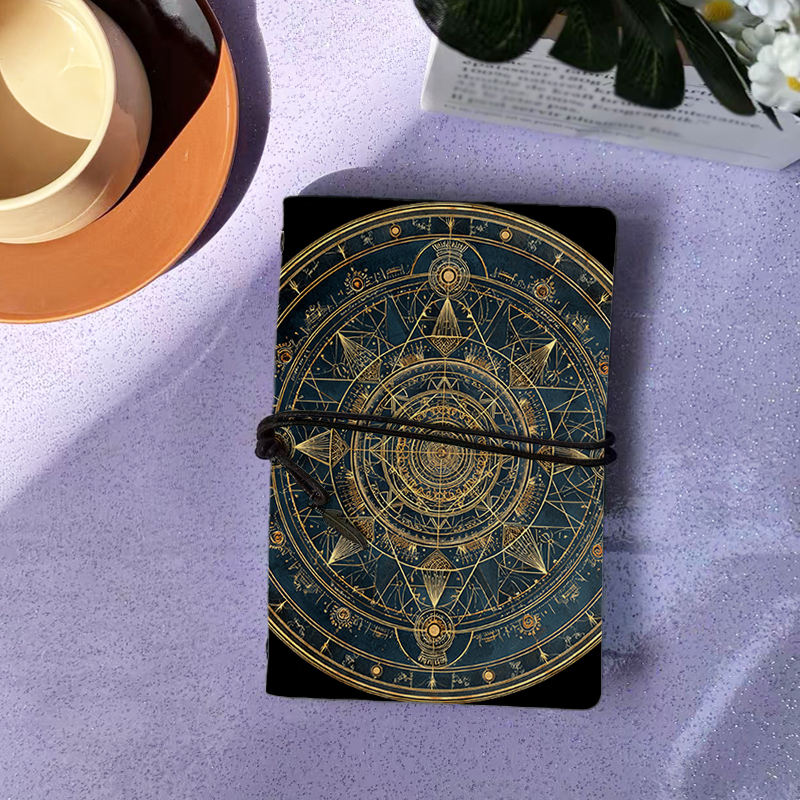 Cuaderno Vintage A6 con cierre de corbata Papel grueso Gran regalo para fusiones Adquisiciones Reunión de invitados con Circulo misterioso