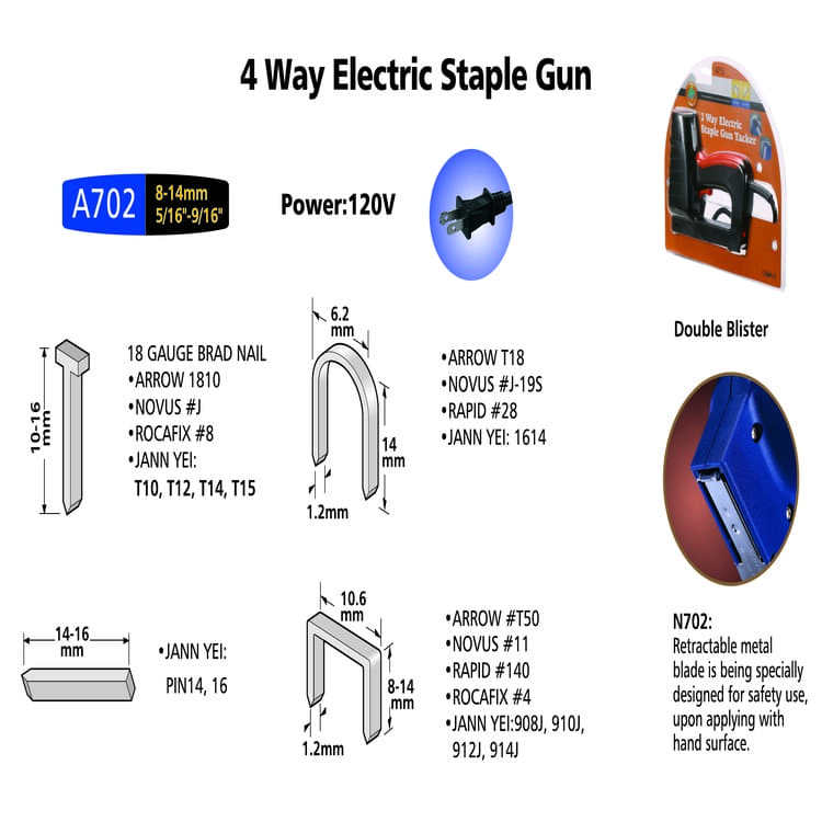 Capacidad:Corona: U-tipo 80 PCs: clavo 90 PCs: 85 PCs