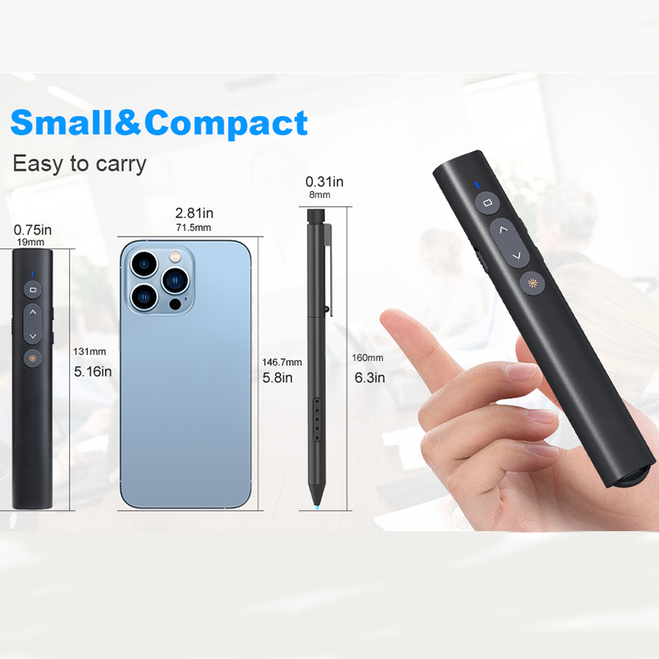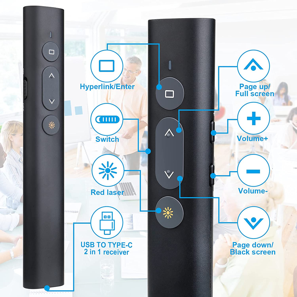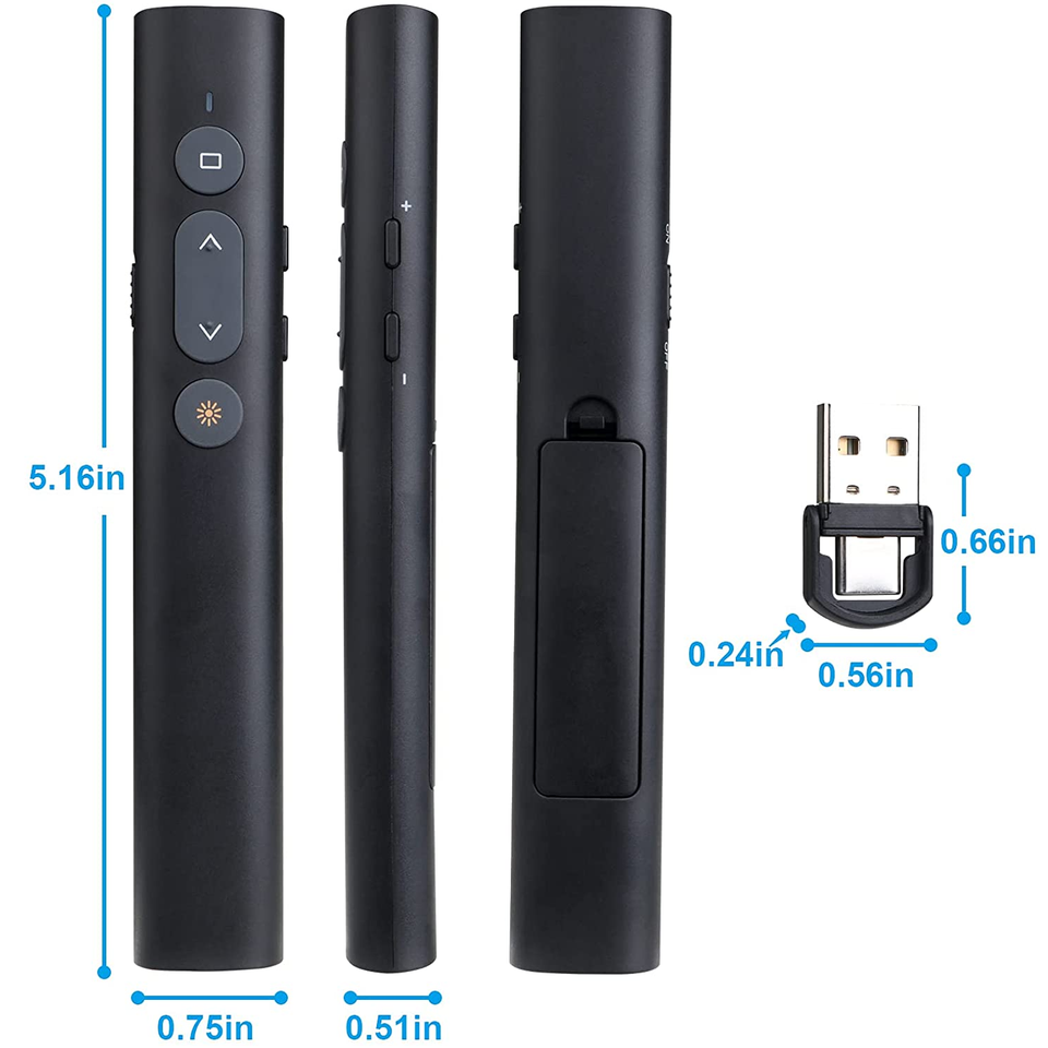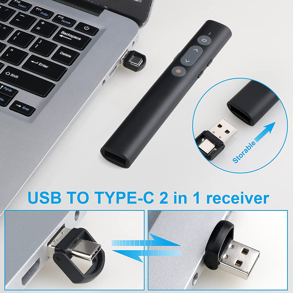Puntero Láser Inalámbrico Rojo de 2.4G con Batería AAA, Receptor USB-C, Alcance de 1000M para Reuniones, Capacitación y Enseñanza