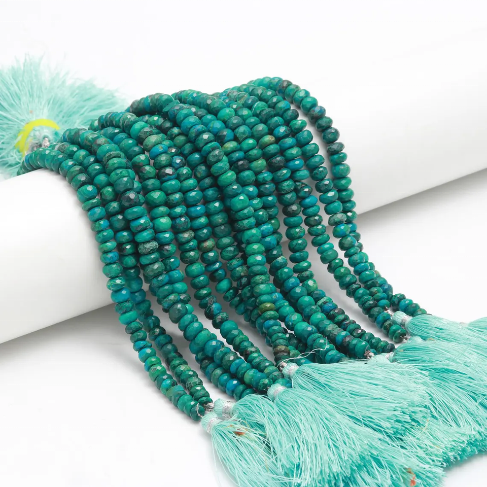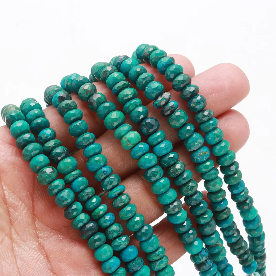 Calidad Natural Chrysocolla Faceted Rondelle Beads
