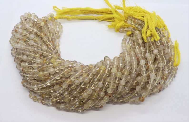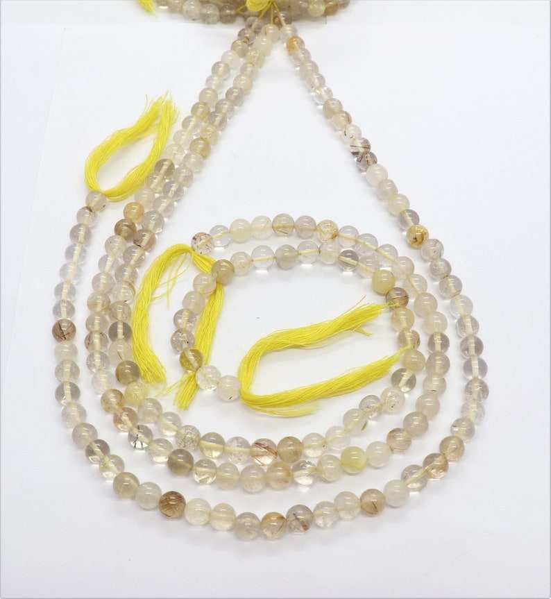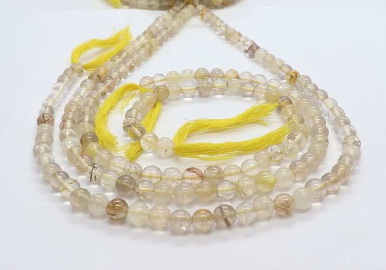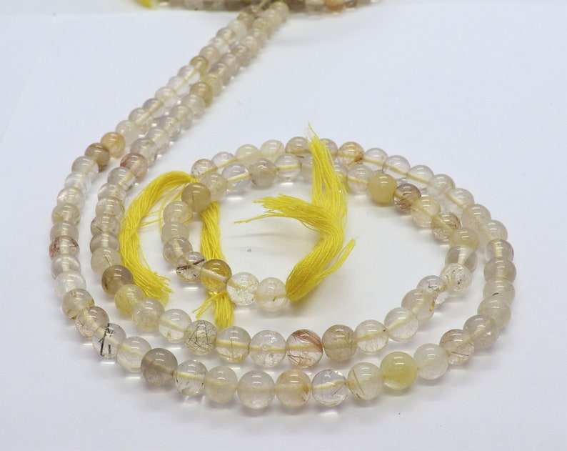 Cuentas redondas lisas de rutilo dorado AAA de 6-7 mm, cuentas de piedras preciosas de rutilo amarillo de 13 pulgadas, forma redonda de rutilo dorado para la fabricación de joyas