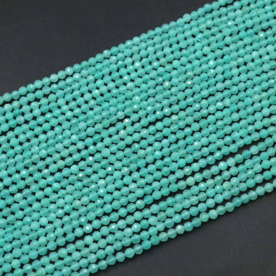 Cuentas de Amazonita Natural Grado AAA, Forma Rondelle Facetada, 3mm-3.5mm, Azul Cielo, Perforadas al Centro, Certificadas por CMA, Hilo de 13 Pulgadas para Joyería