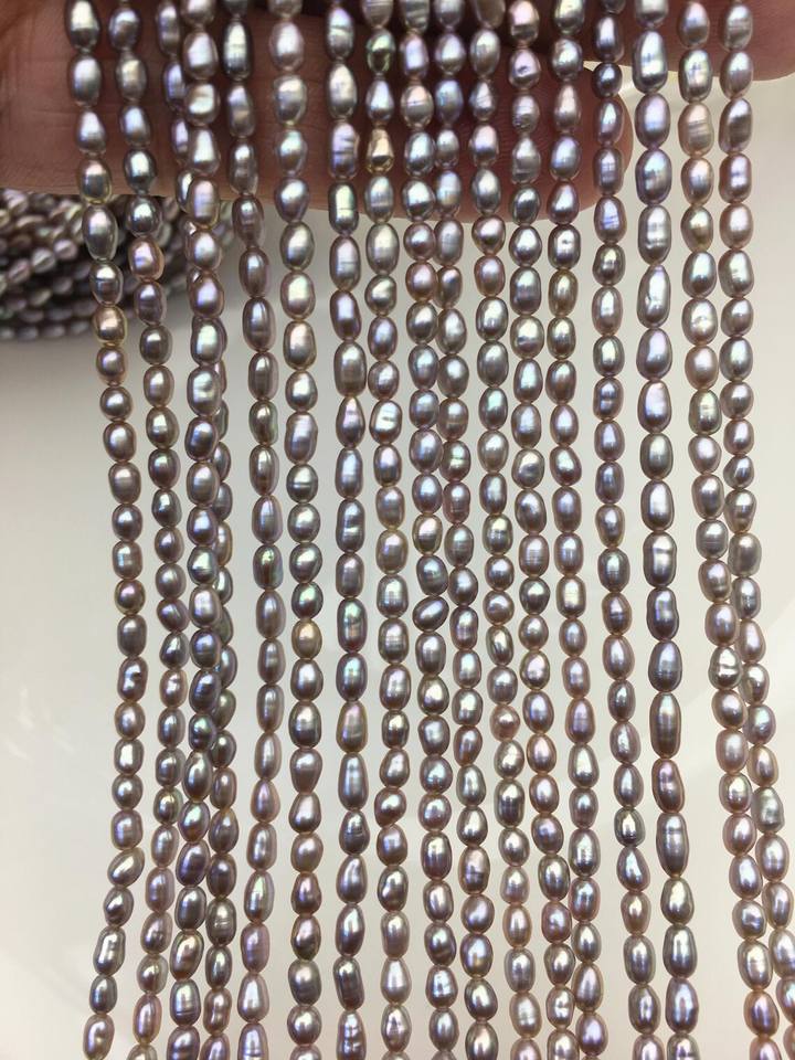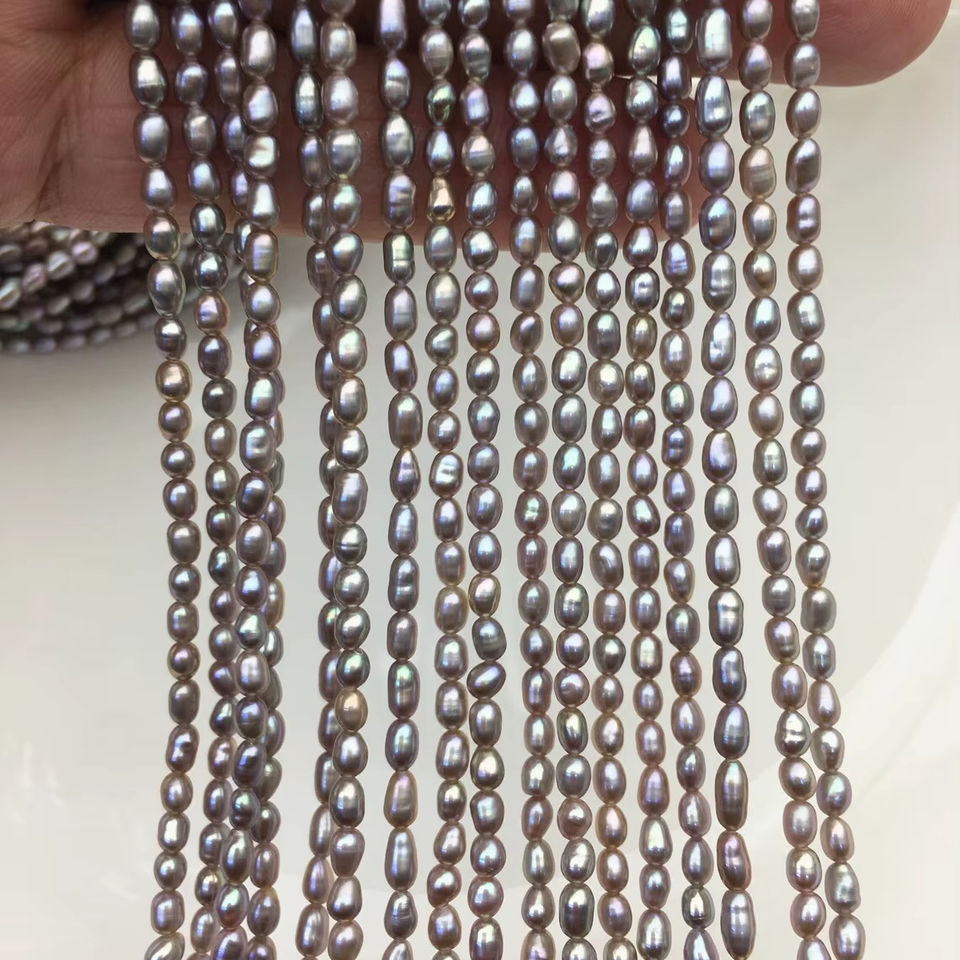 Perlas de Agua Dulce Ovaladas de Color Gris Púrpura AAA, 2-3x4-5mm, Hebra Suelta, Perlas Cultivadas Genuinas para Suministros de Joyería al por Mayor
