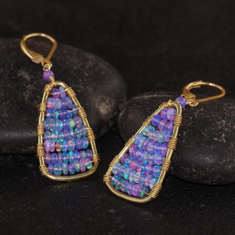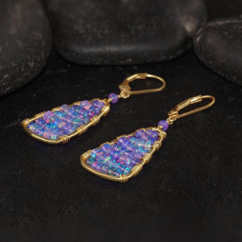 Pendientes Colgantes de Ópalo Lavanda AAA para Ella, Ópalo Lavanda Fuego, Plata de Ley 925, Chapado en Oro de 14K, Pendientes Hechos a Mano, Regalo