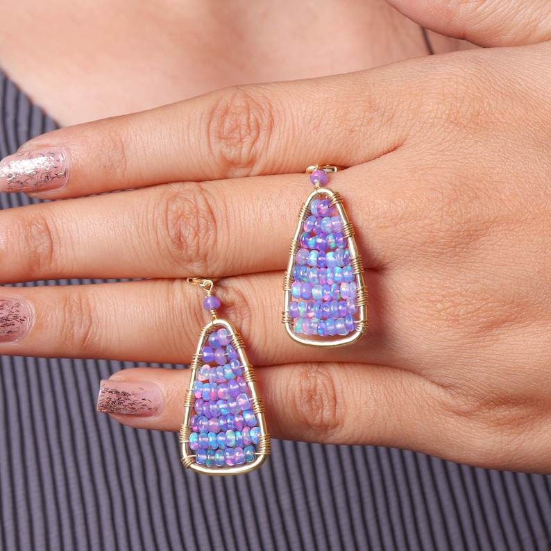 Ojo de Hada Lavanda con Cuentas de Ópalo Lavanda Brillantes