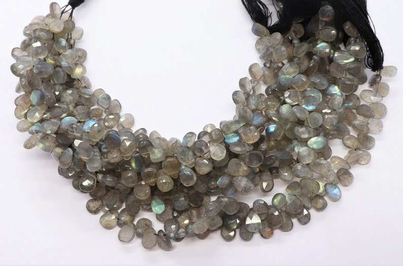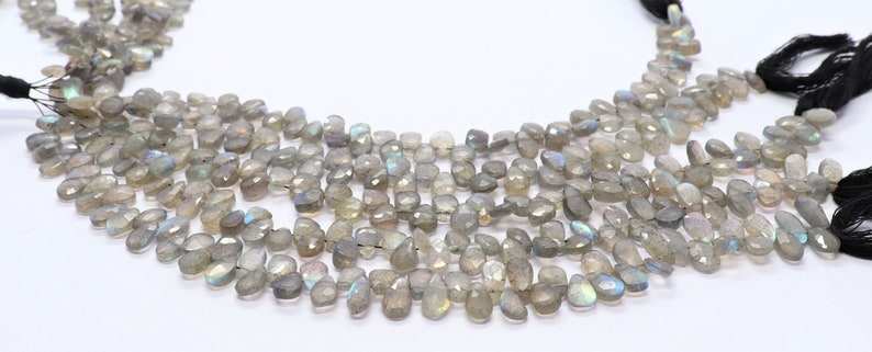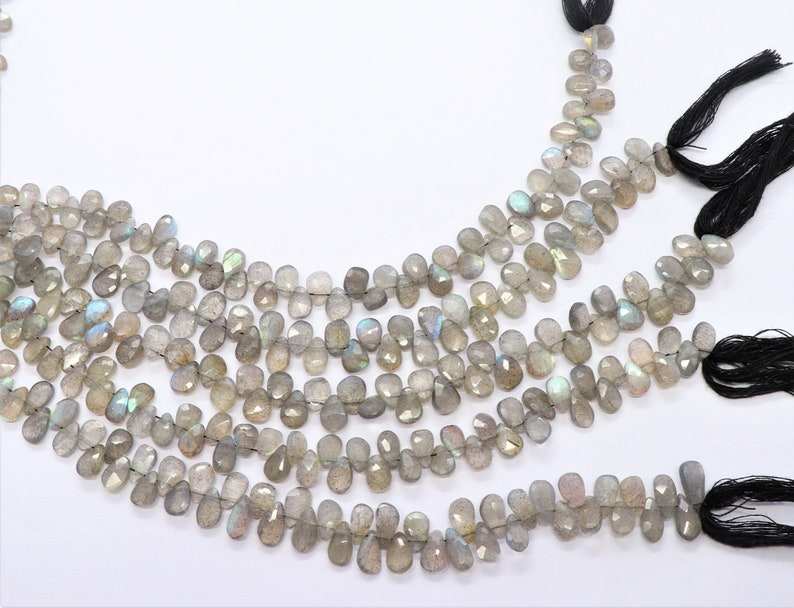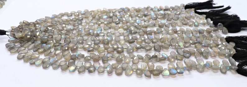 Cuentas facetadas de labradorita natural AAA en forma de pera de 4x6 mm, cuentas de piedras preciosas de labradorita, hilo de cuentas de labradorita azul brillante de 7.5 pulgadas