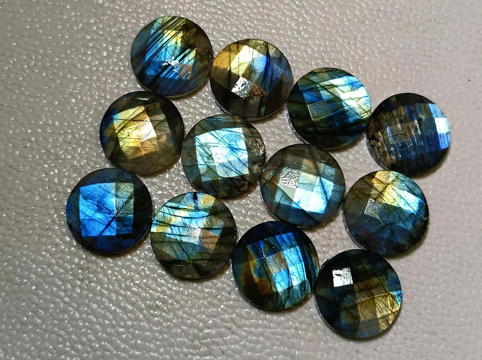 Cabujón redondo de labradorita natural AAA, corte de cuadros facetado de un lado de 8 mm a 30mm de alto, piedras preciosas sueltas para la fabricación de joyas.