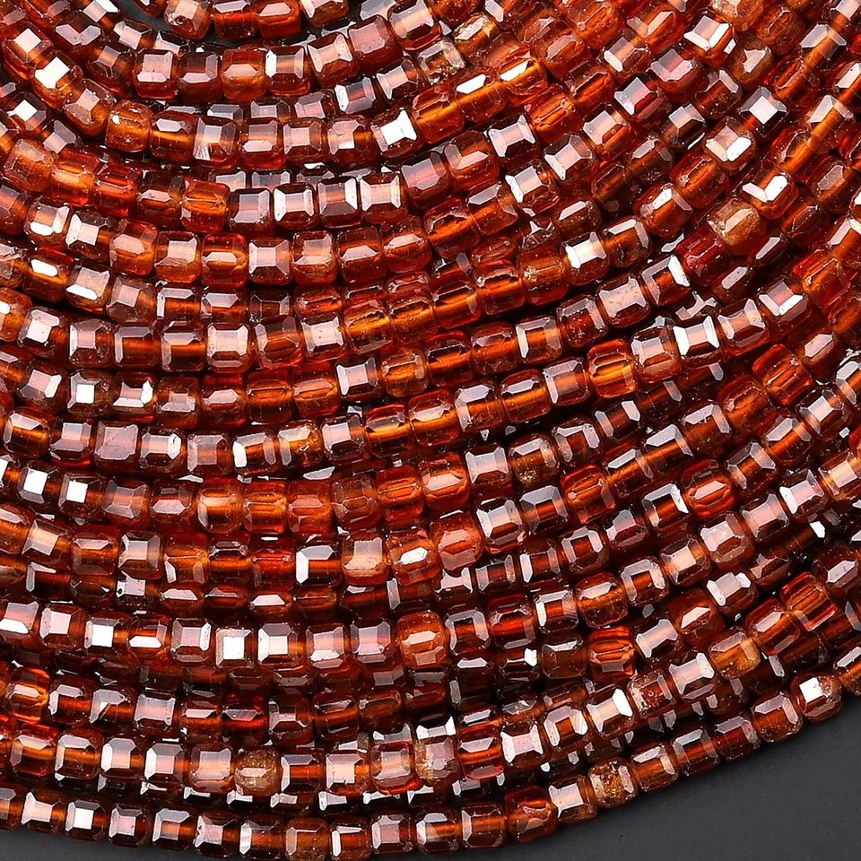 AAA Natural naranja marrón Hessonite granate facetado 3mm cubo cuentas 15,5 "hebra