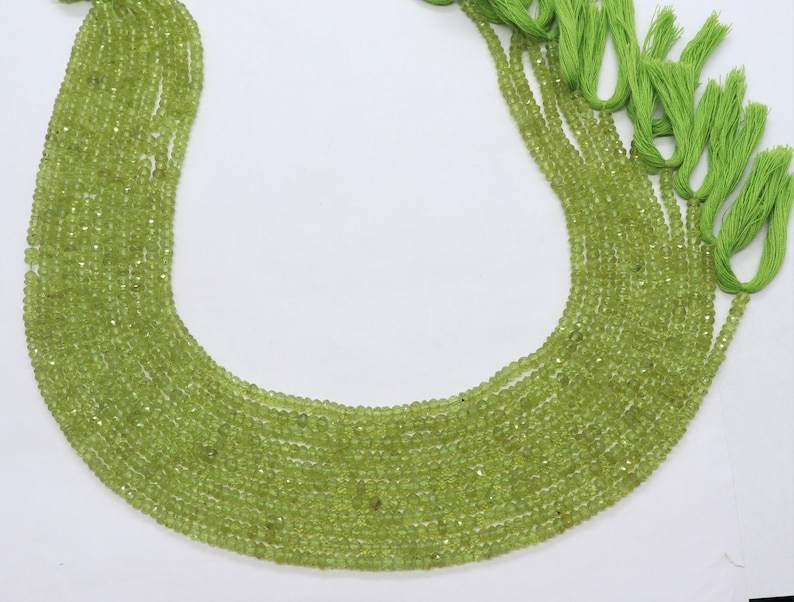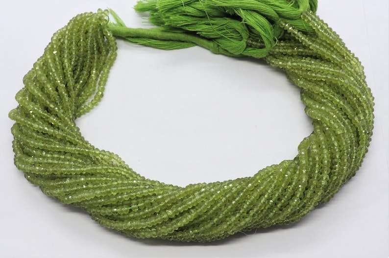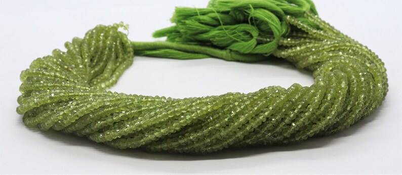 Cuentas facetadas de peridoto natural AAA, forma rondel, de 3.5 a 4 mm, perforadas en el centro, cuentas de peridoto verde, hilo de 13 pulgadas, a granel.