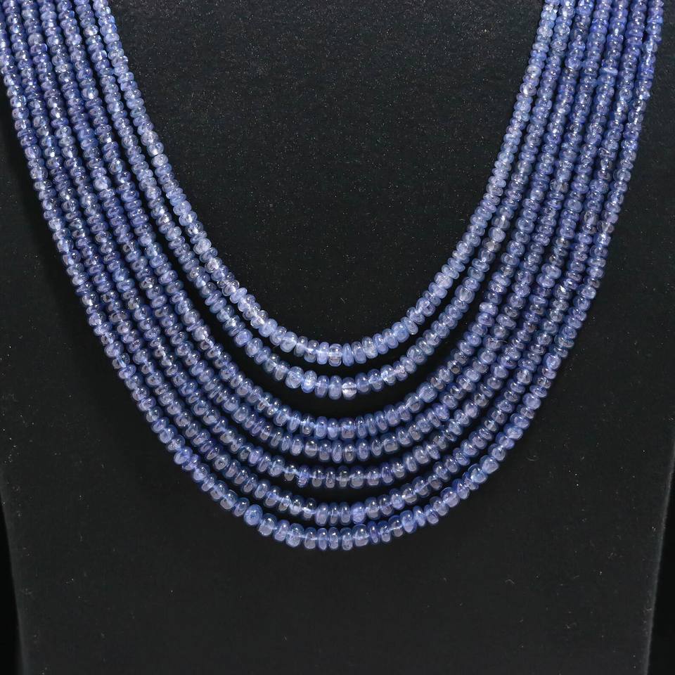 Collar de Tanzanita Natural AAA+ con Cuentas Redondas Lisas de 7 Capas, Joyería de Piedras Preciosas Raras, Regalo para Ella, Collar de Lujo