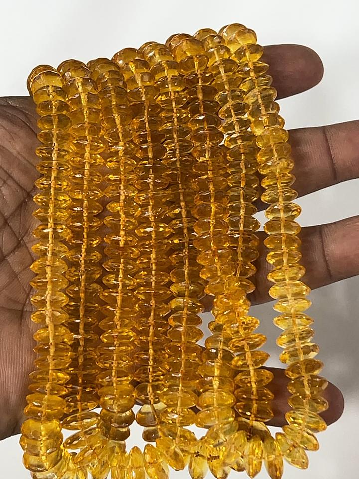 Cuentas Rondelle de cuarzo con revestimiento amarillo Natural AAA, corte alemán, tamaño facetado, hebra de 8-10mm y 14 pulgadas