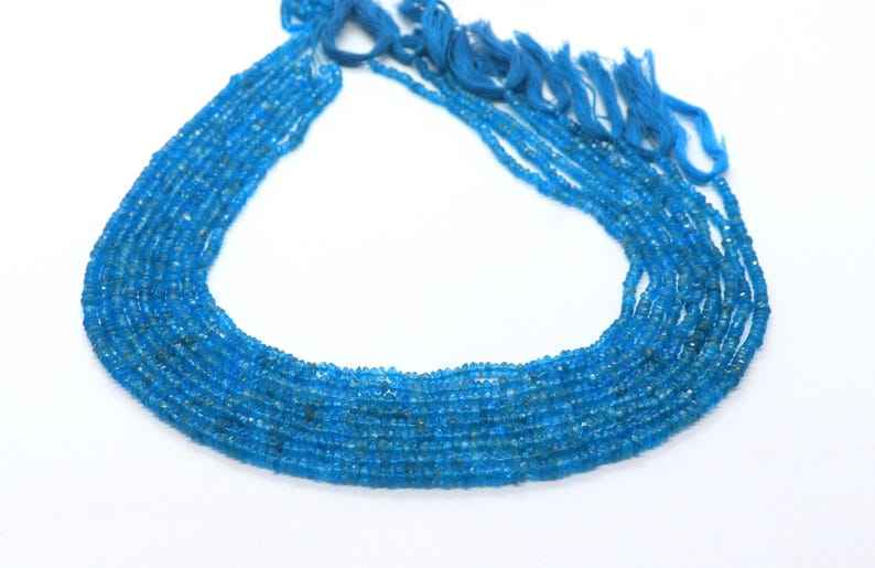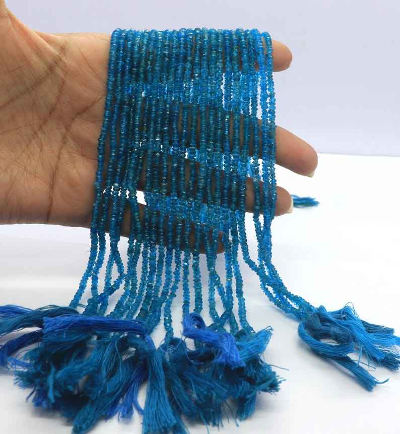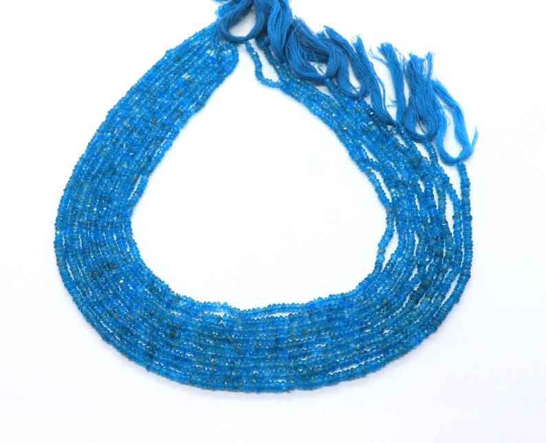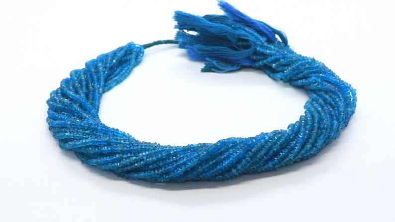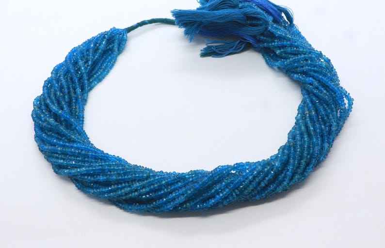 Cuentas facetadas de apatita azul neón AAA de 2.5-3 mm, cuentas de apatita azul facetadas de 13 pulgadas, cuentas de apatita neón natural.