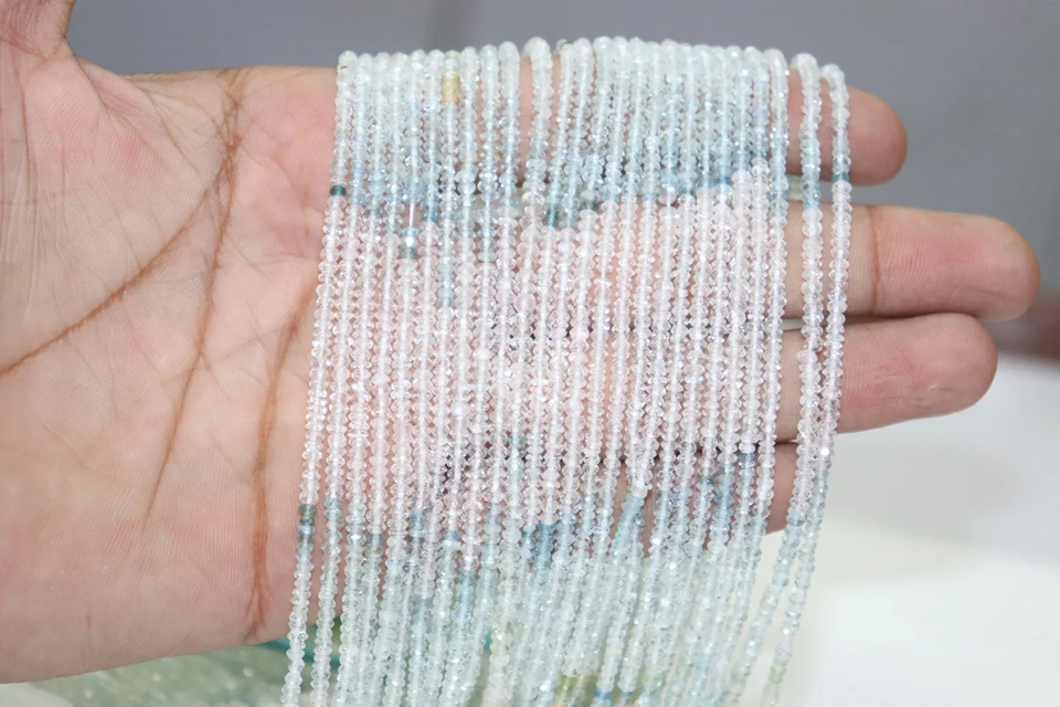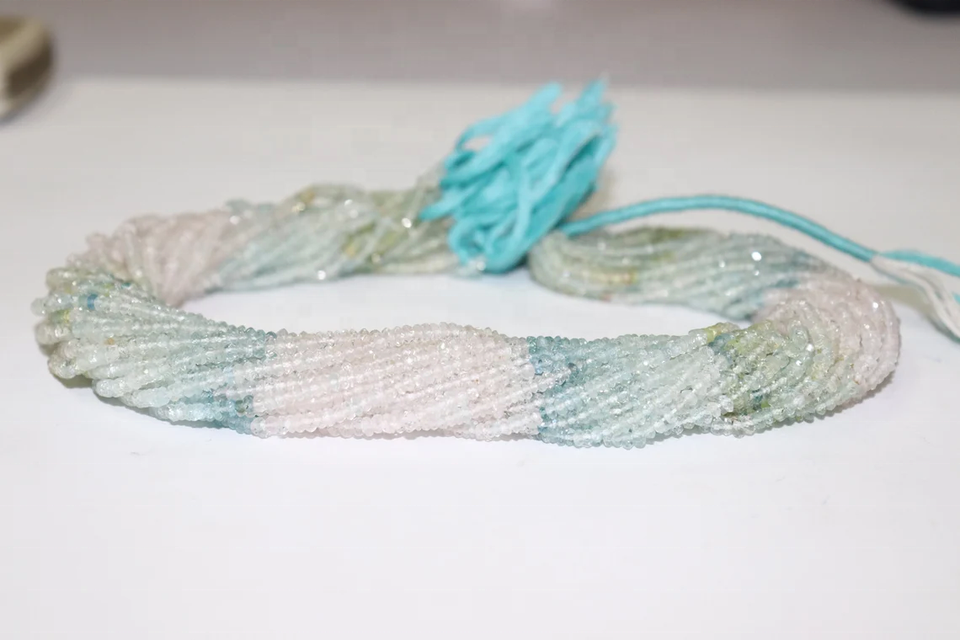 Cuentas de Aguamarina facetadas Rondelle de 3mm de calidad AAA, hebra de 14 pulgadas para fabricación de joyas, piedras preciosas sueltas naturales de Aguamarina múltiple