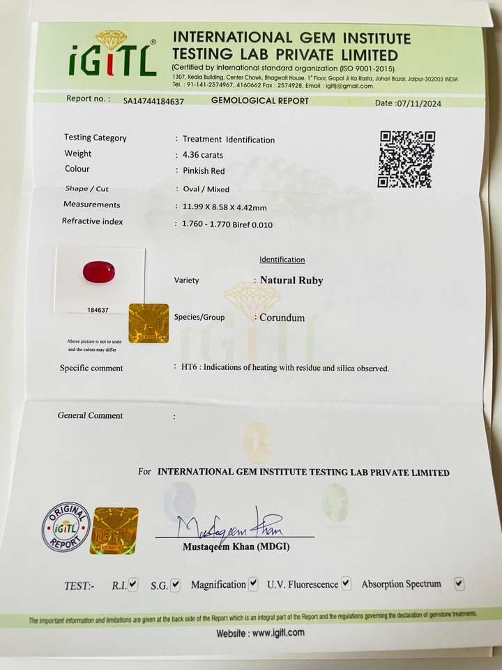Peso de Gema:4,36 quilates